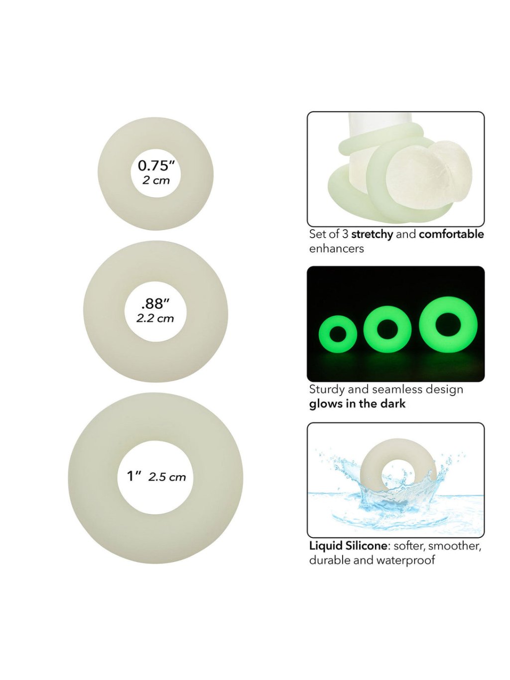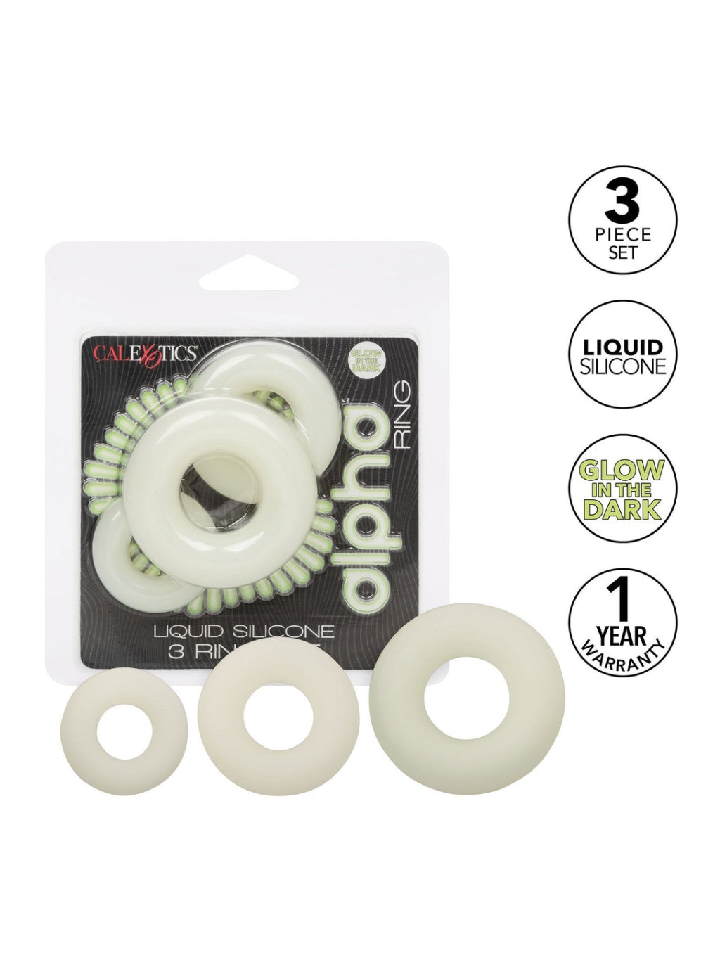 CalExotics Alpha Glow-In-The-Dark Liquid Silicone 3 Ring Set - Glow in the dark