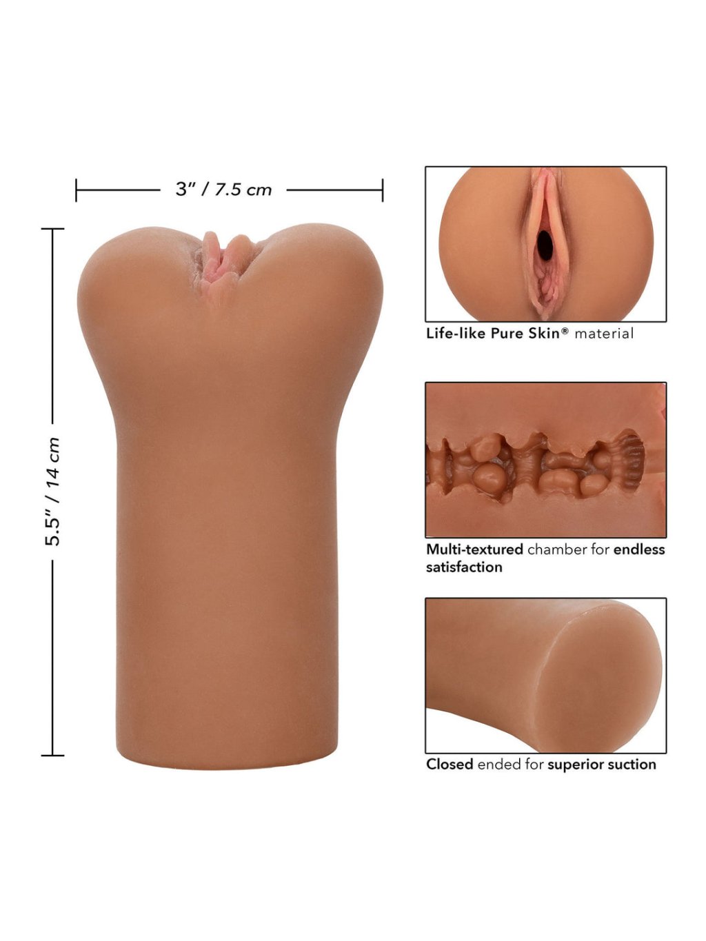 CalExotics Boundless Vulva v karamelovém odstínu je dokonalým společníkem pro intenzivní masturbaci. Vyrobena z měkkého, těsného a pružného materiálu Pure Skin, poskytuje nekonečné potěšení díky multifunkční textuře vnitřní komory. Díky uzavřenému konci nabízí nadstandardní sací efekt a zároveň je snadno udržovatelná a hygienická. Tento voděodolný masturbátor je vytvořen pro maximální uspokojení a splní veškerá očekávání. Zažij nevídané vzrušení s CalExotics Boundless Vulva!Doplňkové parametry