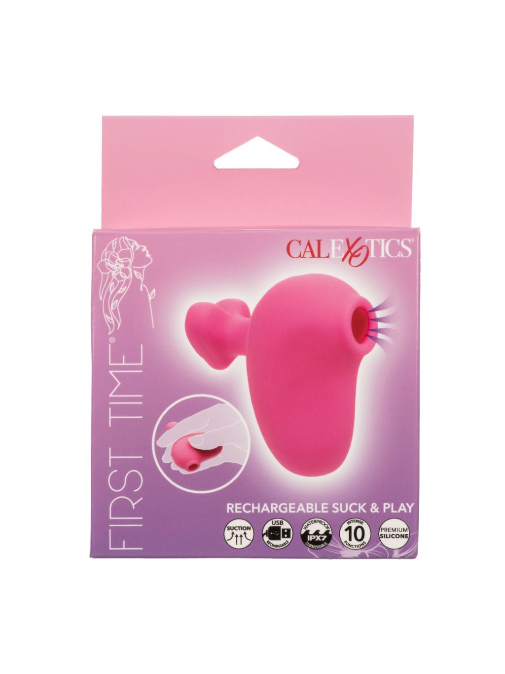 CalExotics First Time Suck & Play Massager – PINK je kompaktní ruční masér, který kombinuje intenzivní sací stimulaci s vibracemi pro rychlé i dlouhotrvající potěšení. Díky 10 sacím režimům a 10 vibračním módům si snadno přizpůsobíte intenzitu přesně podle svých potřeb.