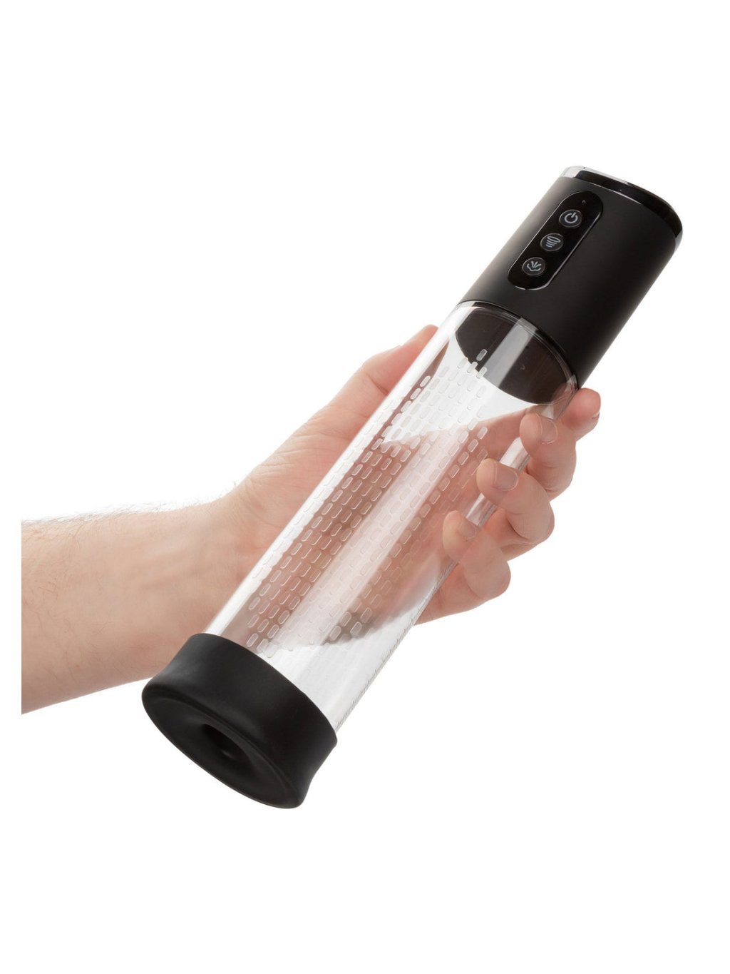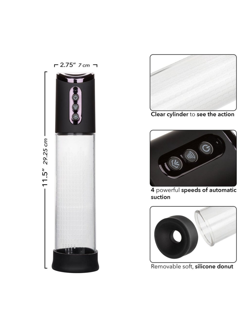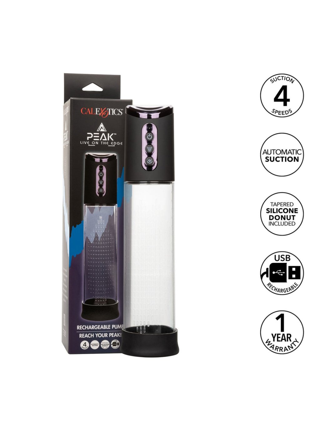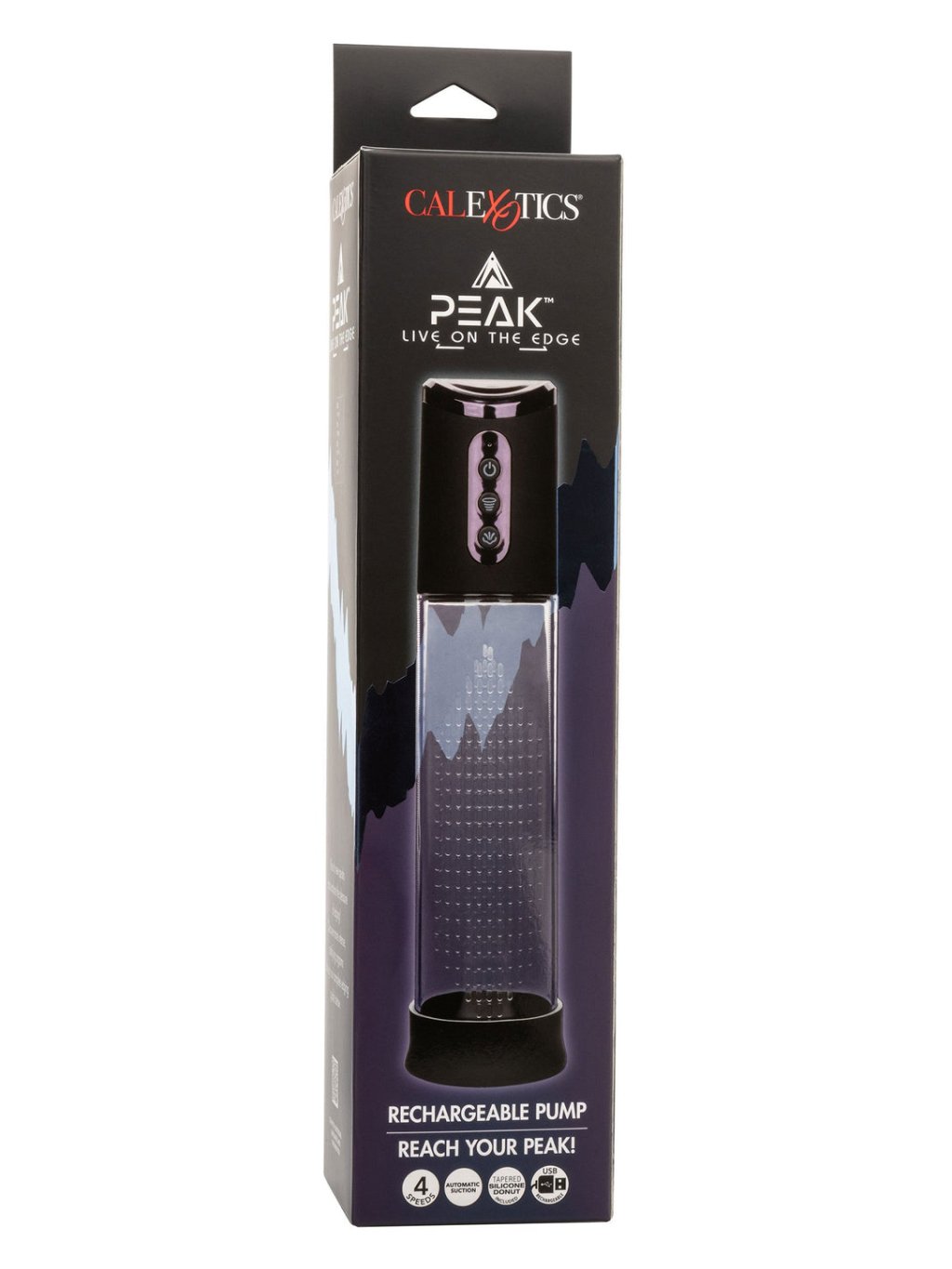 Elevate your pleasure with the Peak Rechargeable Pump, a cutting-edge device for those craving power and convenience. This automatic pump offers incredible suction at the touch of a button, revolutionizing intimate enhancement. With four adjustable speeds, customize your experience for gentle to intense sensations. The ergonomic design ensures single-handed operation, freeing your other hand for exploration. A removable soft Silicone donut ensures comfort and efficacy, while the clear cylinder adds visual excitement. USB rechargeable, it fully charges in 2 hours, providing up to 120 minutes of high-speed and 180 minutes of low-speed usage. Experience peak satisfaction with the Peak Rechargeable Pump. Zvyšte své potěšení s dobíjecí pumpou Peak, špičkovým zařízením pro ty, kteří touží po síle a pohodlí. Tato automatická pumpa nabízí neuvěřitelnou sací sílu na stisknutí tlačítka, čímž zcela mění zážitek z intimního zlepšování. Díky čtyřem nastavitelným rychlostem si můžete přizpůsobit zážitek od jemných po intenzivní pocity. Ergonomický design umožňuje ovládání jednou rukou, což druhou ruku osvobozuje pro další průzkum. Odjímatelný měkký silikonový kroužek zajišťuje pohodlí a účinnost, zatímco průhledný válec dodává vizuální vzrušení. Nabíjení přes USB, plné nabití za 2 hodiny, poskytuje až 120 minut provozu na vysoké rychlosti a 180 minut na nízké rychlosti. Zažijte vrcholné uspokojení s dobíjecí pumpou Peak.