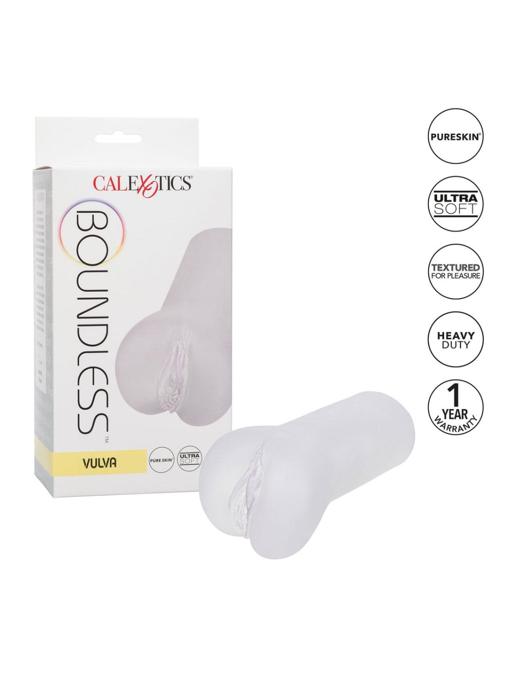 Genießen Sie endloses Vergnügen mit CalExotics Boundless Vulva – Transparent. Dieser realistische Masturbator besteht aus weichem, engem und flexiblem Pure Skin-Material, das für ein unglaublich realistisches Gefühl sorgt. Mit vielen Texturen und einem geschlossenen Ende für maximale Saugwirkung ist dieser wasserdichte Masturbator von CalExotics ein großartiger Begleiter für intime Momente. Dank des TPE-Materials ist er hygienisch wartungsfrei und leicht zu reinigen. Tauchen Sie ein in eine Welt endlosen Vergnügens mit der CalExotics Boundless Vulva – Transparent!