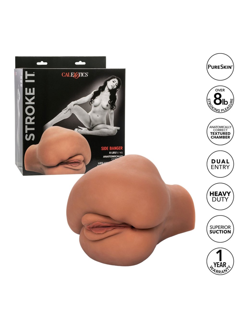 Entdecken Sie kompromissloses Vergnügen mit Stroke It Side Banger von CalExotics – luxuriösem Anal- und Vaginalmasturbator in Lebensgröße, der beeindruckende 3,7 kg ein extrem realistisches Gefühl bietet Pure Skin™.