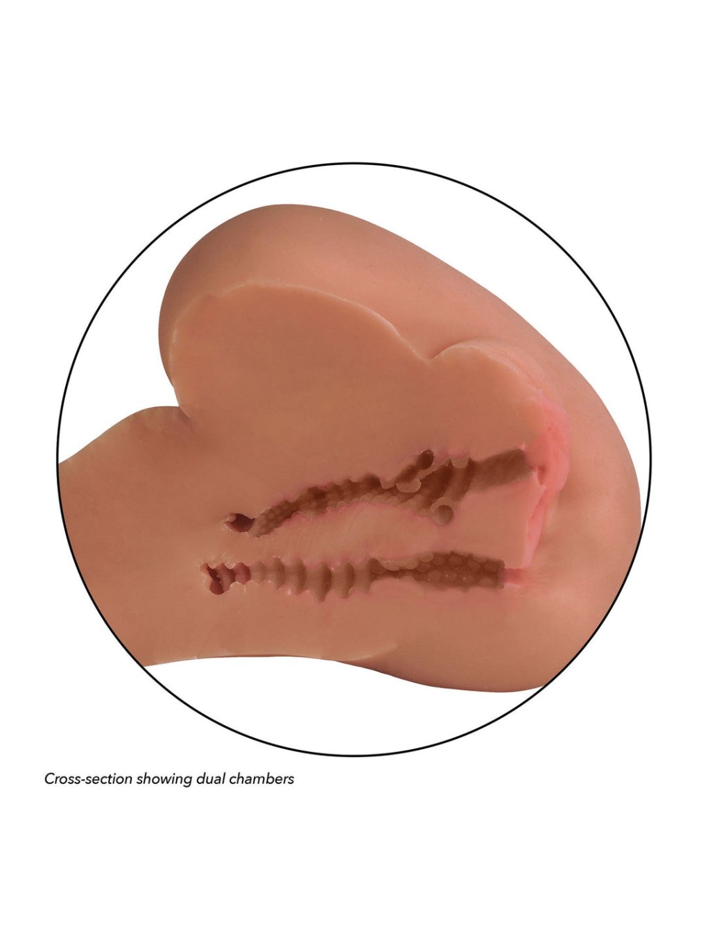 Beide Eingänge führen zu zwei anatomisch geformten und texturierten Kammern, die für maximale Reibung und tiefe Stimulation bei jeder Bewegung entwickelt wurden.