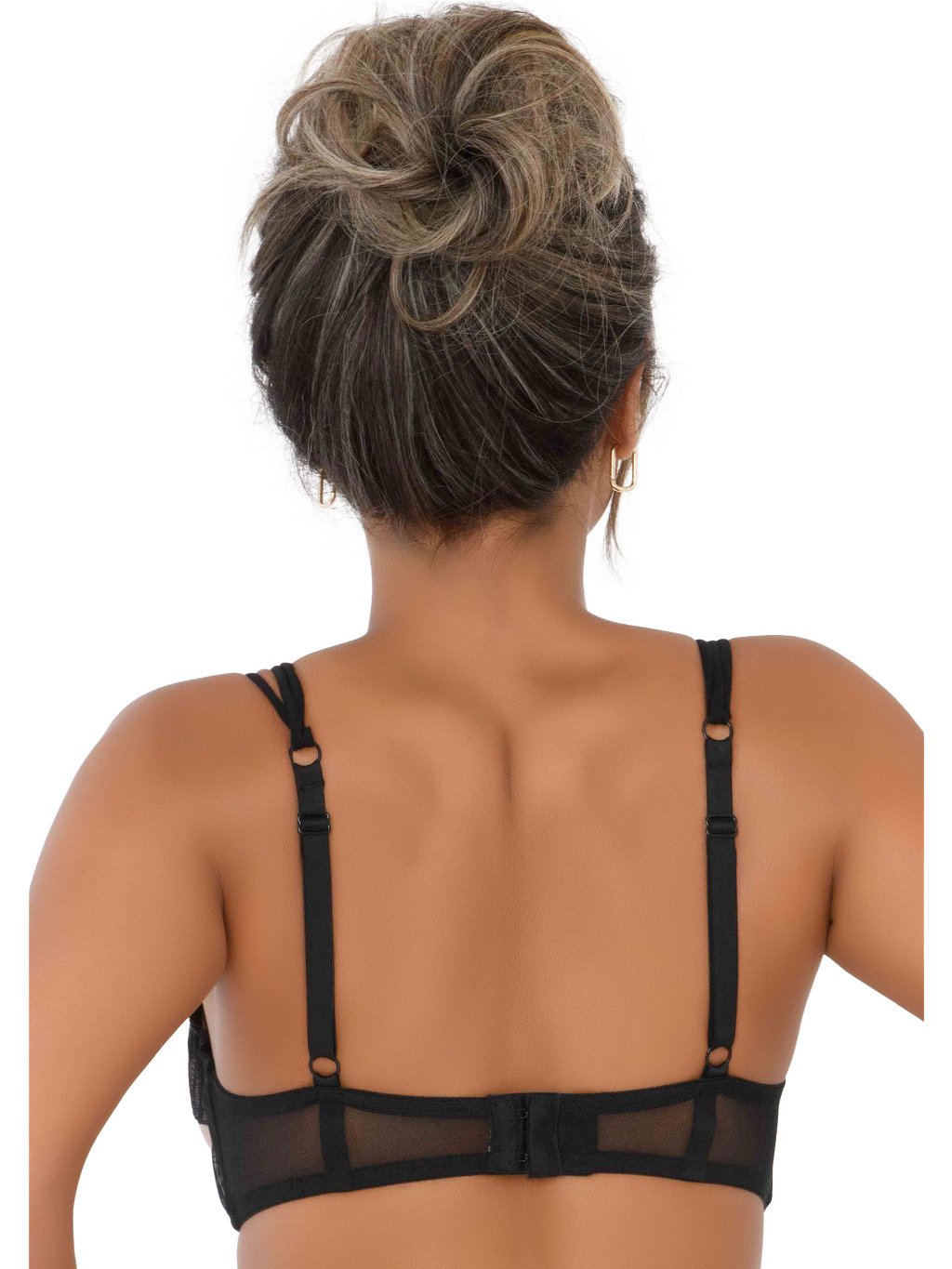 Kühner, schwarzer, ungefütterter BH, der oben mit feiner Spitze und unten mit transparentem Stoff verziert ist (bildet einen dezenten BH-Teil), mit Details in Form von Diamanten, verstellbaren Trägern und einem 3x2-Hakenverschluss hinten. Material 95% Polyester | 5% Elasthan. Geliefert vom Hersteller Daring Intimates in schwarzer Farbe. Waschhinweise: Handwäsche | Kein Bleichmittel verwenden | Nicht im Trockner trocknen | Nicht mit heißem Bügeleisen bügeln | Nicht zur chemischen Reinigung bringen.Zusätzliche Parameter