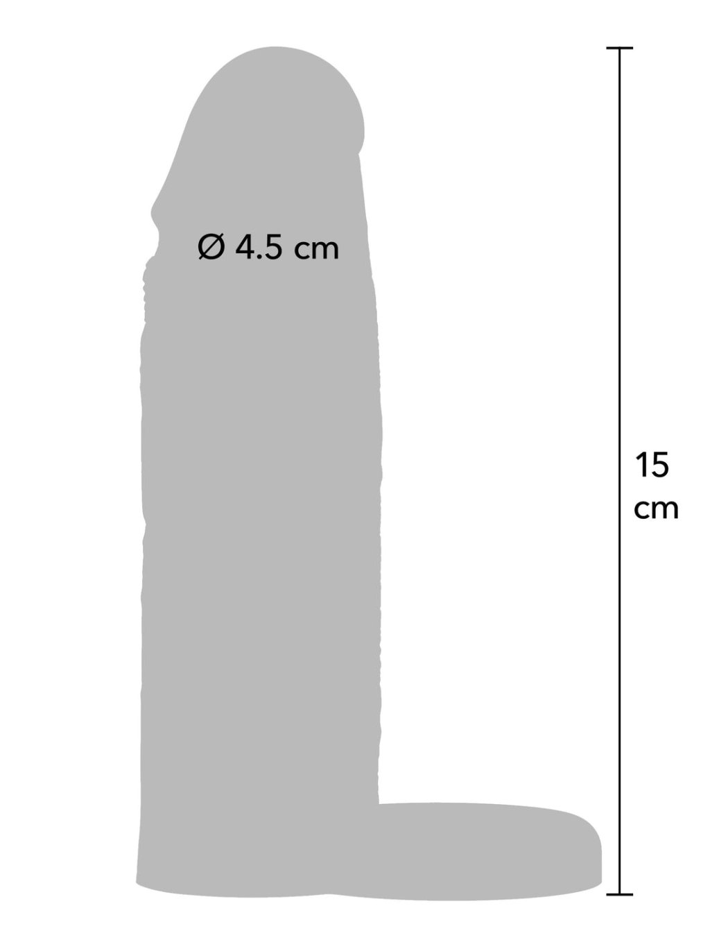 Penishülle mit bauchiger Spitze und glatter Oberfläche, auch für Analsex geeignet. Bequemes Tragen mit Sicherung hinter den Hoden und vergrößert den Penis in Länge und Umfang.