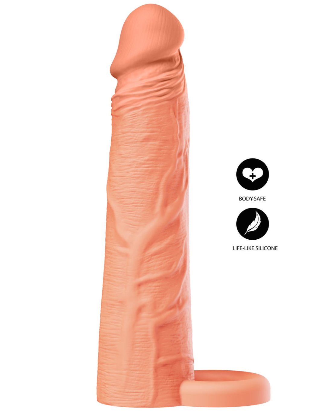 Der integrierte Ring sorgt dafür, dass der Aufsatz auch bei intensiver Nutzung sicher an seinem Platz bleibt. Das körperfreundliche, sichere Material ist ideal für alle, die mehr Länge, stärkere Penetration oder Unterstützung bei erektiler Dysfunktion suchen. Der Aufsatz bietet ein tieferes, vollereres und intensiveres Erlebnis und lässt Fantasien Wirklichkeit werden.