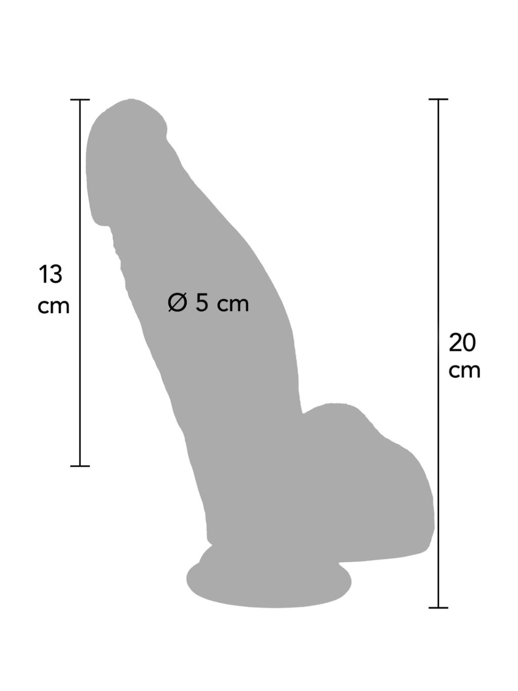 Das detailreiche Design umfasst Aderung über die gesamte Länge, geformte Eichel und realistische Hoden, die die Authentizität erhöhen und einen festeren Griff ermöglichen. Dank der natürlichen Krümmung ist er ideal zur Stimulation des G-Punkts oder der Prostata. Die leistungsstarke Saugnapf ermöglicht ein Spielen ohne Hände.