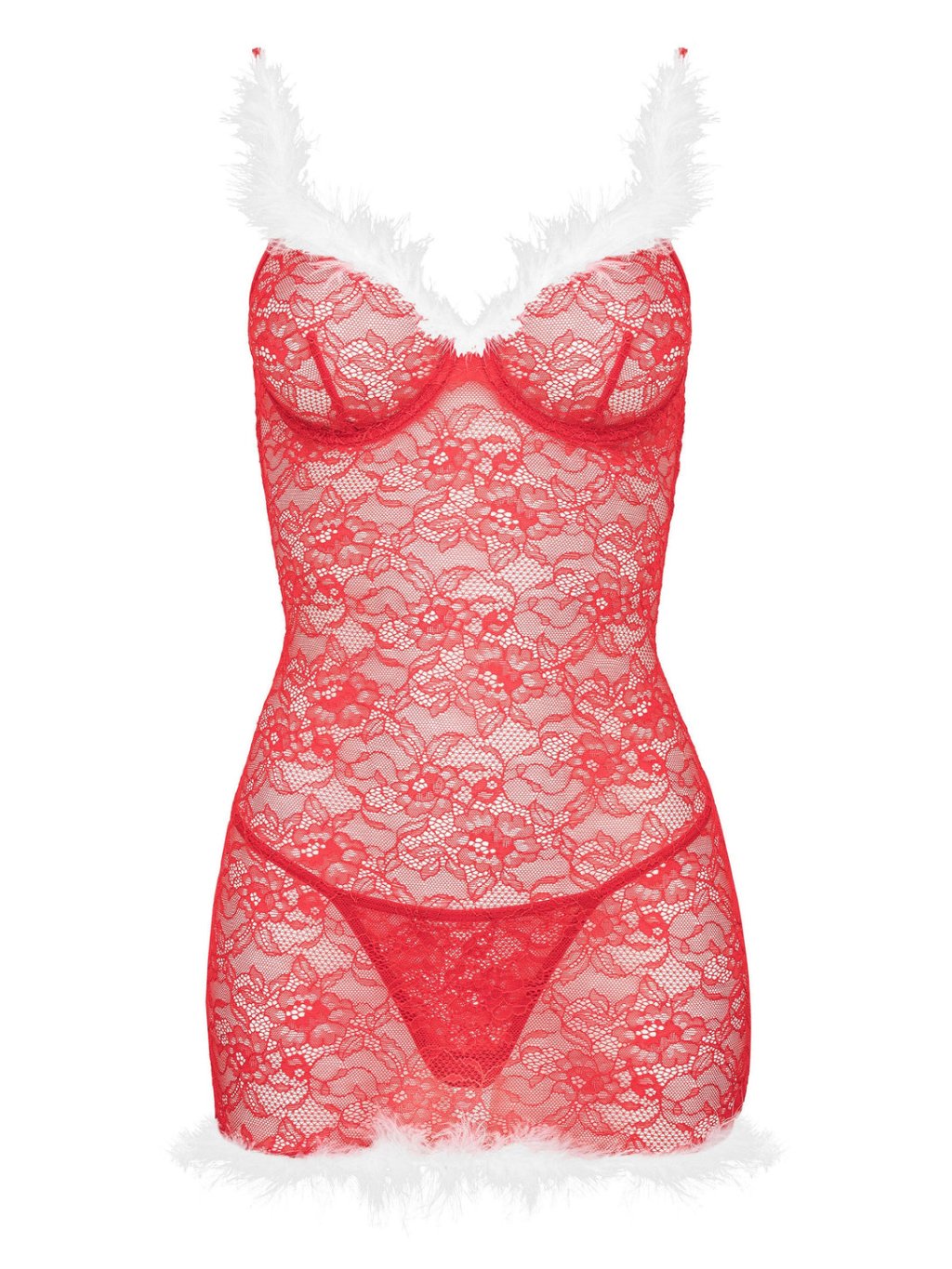 Ein luxuriöses Babydoll aus Spitze, das Sie den ganzen Tag lang mit seiner Sinnlichkeit verwöhnen wird.