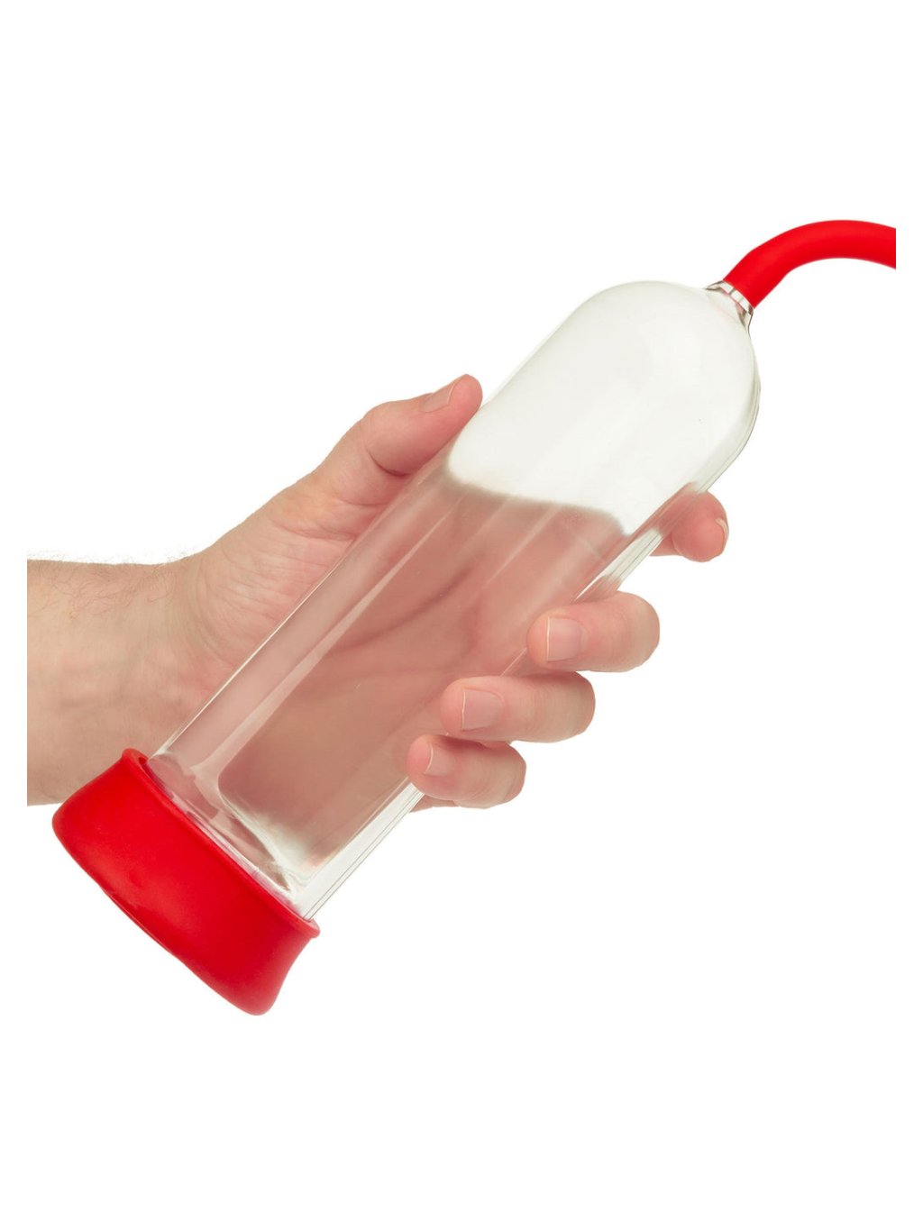 Erleben Sie eine neue Ebene des Vergnügens mit der Optimum Series Magnified Pumpe von CalExotics, die speziell für maximale Vergrößerung und Verbesserung der männlichen Leistung entwickelt wurde. Diese beeindruckende Pumpe mit Vergrößerungszylinder bietet starke Saugeffekte für intensivere Empfindungen bei jeder Anwendung. Der transparente Zylinder mit präzisen Messskalen ermöglicht es Ihnen, Ihren Fortschritt zu verfolgen und die Ergebnisse in Echtzeit zu sehen. Die feste Basis mit Rand sorgt für eine sichere Abdichtung, während der innovative Master Grip™-Griff einfaches und effektives Pumpen ermöglicht. Die Pumpe kann mit oder ohne den mitgelieferten Silikonring für erhöhten Komfort verwendet werden. Ein schnelles Luftablassventil erhöht die Praktikabilität und Sicherheit bei der Verwendung. Dieses Produkt besteht aus hochwertigen Materialien, einschließlich eines Acrylzylinders, eines ABS-Griffs und eines Silikonschlauchs und -rings, was Langlebigkeit und Sicherheit bei der Verwendung gewährleistet. Die rote Farbe erhöht die Attraktivität dieses Modells. Bereiten Sie sich auf unvergessliche Erlebnisse mit der Optimum Series Magnified Pumpe vor, die Ihnen nicht nur eine Leistungssteigerung, sondern auch visuelles Vergnügen durch die Verfolgung Ihres Fortschritts bietet.
