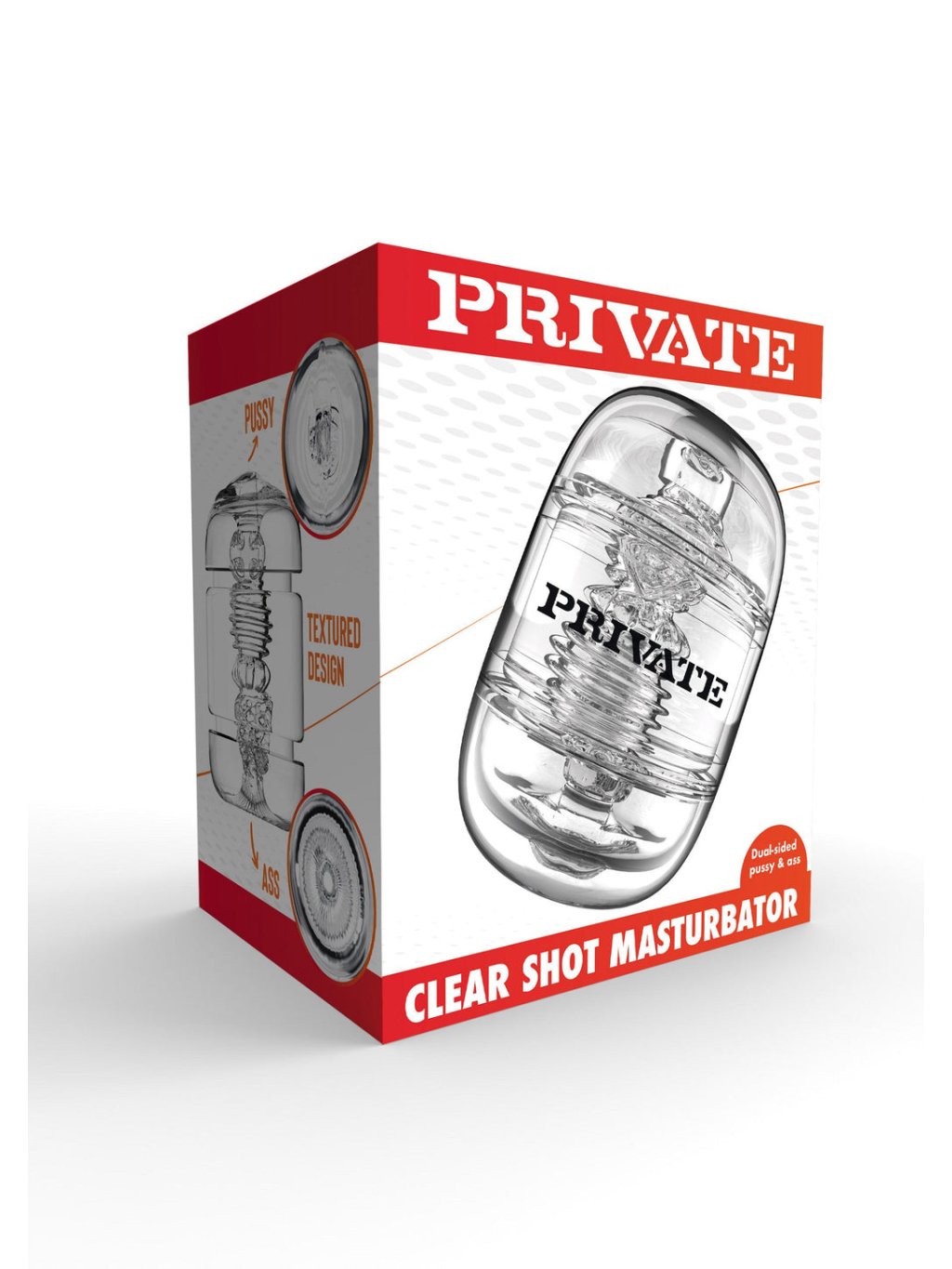 Schauen Sie gerne zu? Maximaler visueller Genuss: Klarer, beidseitiger Masturbator in einem festen Gehäuse. Erleben Sie atemberaubendes Vergnügen und genießen Sie den visuellen Genuss der Masturbation mit dem erstklassigen Clear Dual-Sided Stroker von PRIVATE. Dieser Masturbator, entworfen, um Ihre Fantasien zum Leben zu erwecken, kombiniert aufregende Empfindungen mit einem fesselnden visuellen Erlebnis, alles verpackt in einem eleganten und transparenten festen Gehäuse. Der sorgfältig gestaltete Einsatz bietet zwei verlockende Optionen: eine realistische Vagina für das Gefühl leidenschaftlicher Liebe und eine enge, texturierte Rückseite für das Vergnügen des Analkontakts.