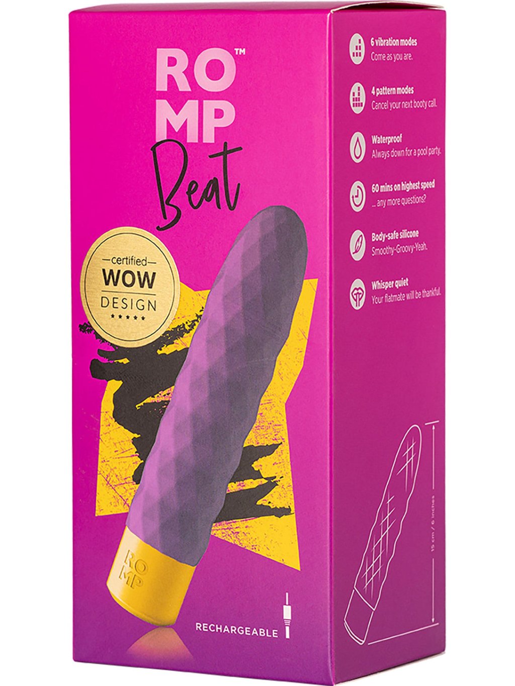 Entdecken Sie ROMP Beat - Purple, einen Vibrator, der Eleganz mit Leistung für maximale Zufriedenheit kombiniert. Dieses Produkt aus der Kategorie der erotischen Hilfsmittel ist die ideale Wahl für jeden, der Qualität und Effizienz sucht. ROMP Beat ist aus sicheren Materialien hergestellt, die hautfreundlich sind und eine komfortable Anwendung gewährleisten. Mit mehreren verschiedenen Vibrationsmodi können Sie verschiedene Intensitätsstufen genießen und das Erlebnis genau nach Ihren Vorstellungen anpassen. Seine wasserdichte Konstruktion ermöglicht die Verwendung in verschiedenen Umgebungen, einschließlich Badewanne oder Dusche. ROMP Beat - Purple ist einfach zu bedienen und seine kompakten Abmessungen garantieren, dass er Ihr diskreter Begleiter auf Reisen wird. Lassen Sie sich mit dem Luxus verwöhnen, den Sie verdienen, mit ROMP Beat - Purple!Zusätzliche Parameter