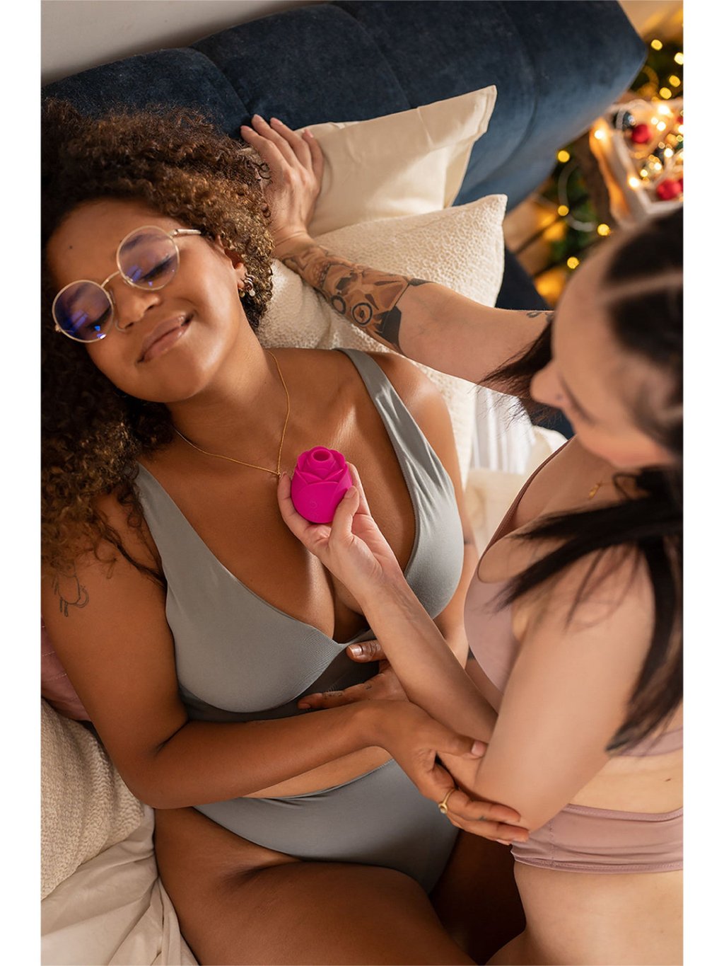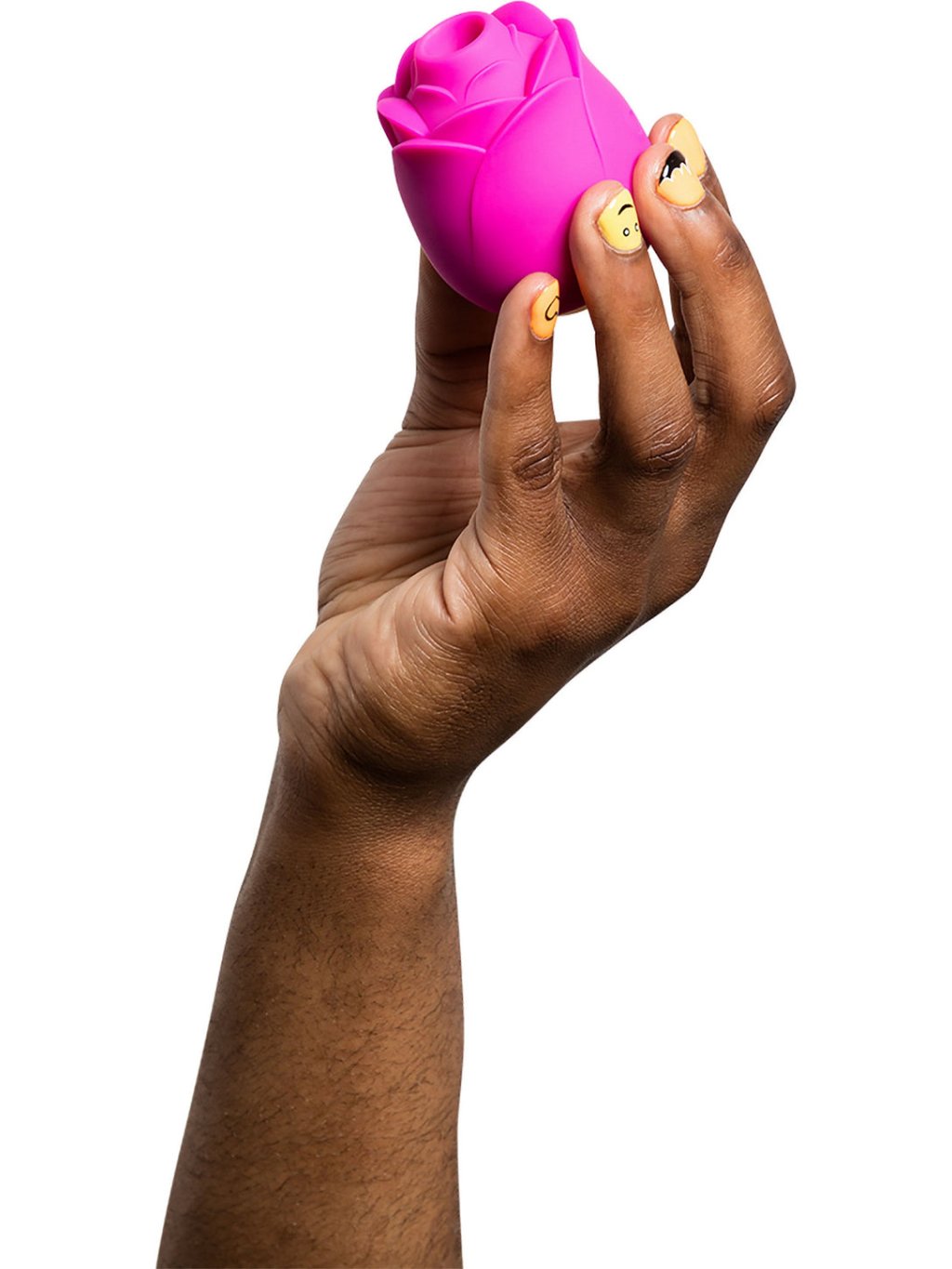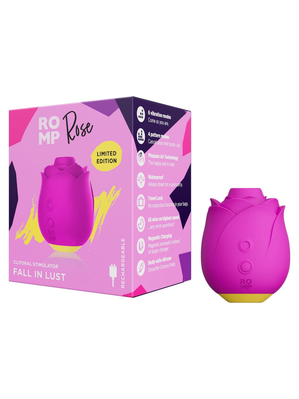 ROMP Rose präsentiert einen einzigartigen Klitorisstimulator, der mit der originalen Pleasure Air-Technologie aufwartet. Diese bahnbrechende Technologie verwendet Luftdruckwellen, um die Klitoris ohne direkten Kontakt zu stimulieren und so einzigartige Sauggefühle zu erzeugen. Mit seiner ungewöhnlichen, augenschmeichelnden Blumenform ist ROMP Rose das erste Erotikspielzeug seiner Art, bei dem das Erreichen eines intensiven Orgasmus ohne Berührung im Vordergrund steht. Der Stimulator bietet sechs Intensitäten und vier Vibrationsmuster, sodass Benutzer unterschiedliche Stimulationsgrade entdecken können. ROMP Rose besteht aus glattem, körpersicherem Silikon und ist in einer attraktiven rosa Farbe erhältlich. Dieses wiederaufladbare Modell garantiert eine einfache Handhabung und lang anhaltende Leistung und ist somit eine ideale Wahl sowohl für Anfänger als auch für Fortgeschrittene. Halten Sie den Einschaltknopf einfach 2 Sekunden lang gedrückt, um ihn einzuschalten. Für ein noch angenehmeres Erlebnis wird die Verwendung von Gleitmittel auf Wasserbasis empfohlen. Die Vibrationen werden durch kurzes Drücken der Funktionstaste aktiviert, mit der Sie zwischen verschiedenen Modi wechseln können. Dank seines leisen Betriebs eignet sich ROMP Rose für eine diskrete Verwendung. Die Reisesicherung wird aktiviert und deaktiviert, indem beide Tasten 3 Sekunden lang gedrückt gehalten werden. Es ertönt ein zweimaliger Piepton und die LED-Leuchte blinkt zweimal, um anzuzeigen, dass die Sperre aktiviert oder deaktiviert ist. Durch das Aufladen des Spielzeugs wird auch die Reisesicherung deaktiviert. Genießen Sie mit ROMP Rose eine neue Dimension der klitoralen Stimulation, die mit ihrem einzigartigen Design nicht nur erstaunliche Empfindungen, sondern auch ästhetisches Vergnügen bietet.