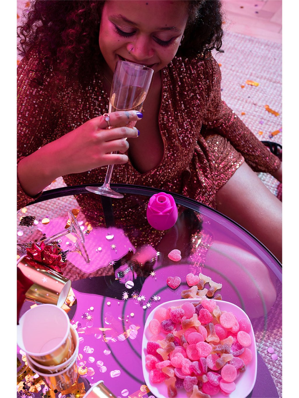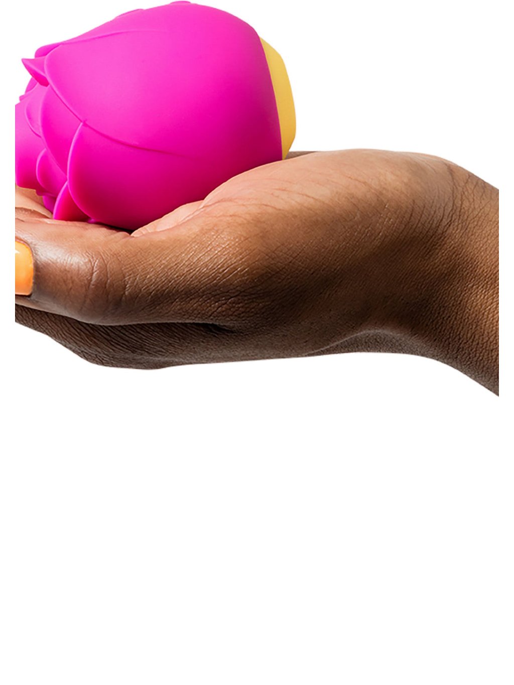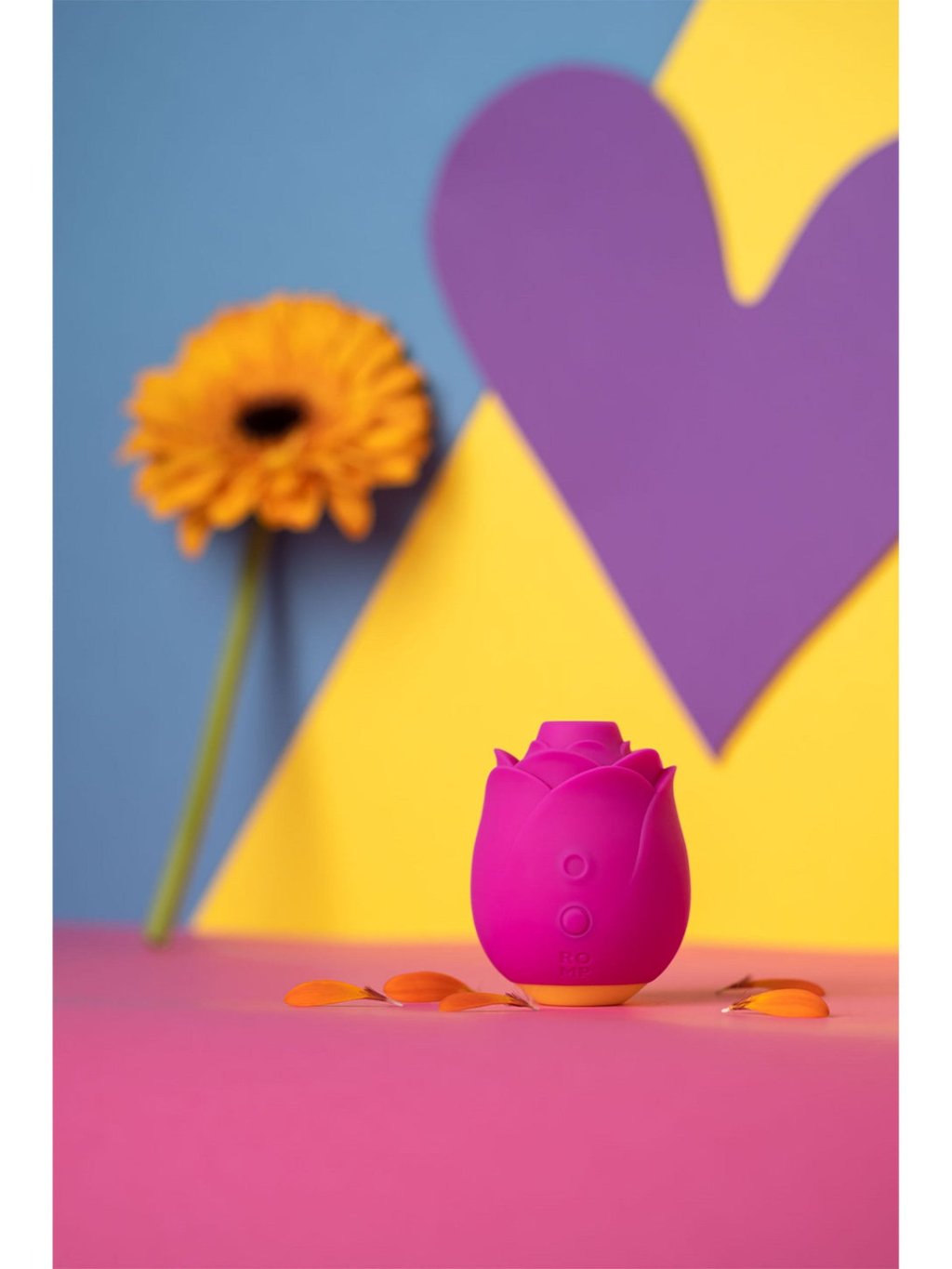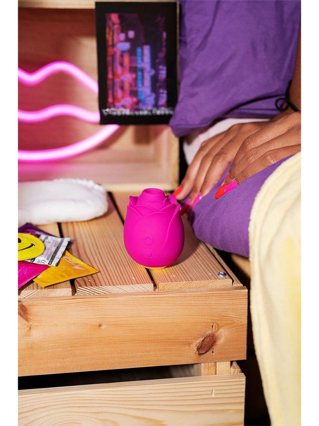 ROMP Rose präsentiert einen einzigartigen Klitorisstimulator, der mit der originalen Pleasure Air-Technologie aufwartet. Diese bahnbrechende Technologie verwendet Luftdruckwellen, um die Klitoris ohne direkten Kontakt zu stimulieren und so einzigartige Sauggefühle zu erzeugen. Mit seiner ungewöhnlichen, augenschmeichelnden Blumenform ist ROMP Rose das erste Erotikspielzeug seiner Art, bei dem das Erreichen eines intensiven Orgasmus ohne Berührung im Vordergrund steht. Der Stimulator bietet sechs Intensitäten und vier Vibrationsmuster, sodass Benutzer unterschiedliche Stimulationsgrade entdecken können. ROMP Rose besteht aus glattem, körpersicherem Silikon und ist in einer attraktiven rosa Farbe erhältlich. Dieses wiederaufladbare Modell garantiert eine einfache Handhabung und lang anhaltende Leistung und ist somit eine ideale Wahl sowohl für Anfänger als auch für Fortgeschrittene. Halten Sie den Einschaltknopf einfach 2 Sekunden lang gedrückt, um ihn einzuschalten. Für ein noch angenehmeres Erlebnis wird die Verwendung von Gleitmittel auf Wasserbasis empfohlen. Die Vibrationen werden durch kurzes Drücken der Funktionstaste aktiviert, mit der Sie zwischen verschiedenen Modi wechseln können. Dank seines leisen Betriebs eignet sich ROMP Rose für eine diskrete Verwendung. Die Reisesicherung wird aktiviert und deaktiviert, indem beide Tasten 3 Sekunden lang gedrückt gehalten werden. Es ertönt ein zweimaliger Piepton und die LED-Leuchte blinkt zweimal, um anzuzeigen, dass die Sperre aktiviert oder deaktiviert ist. Durch das Aufladen des Spielzeugs wird auch die Reisesicherung deaktiviert. Genießen Sie mit ROMP Rose eine neue Dimension der klitoralen Stimulation, die mit ihrem einzigartigen Design nicht nur erstaunliche Empfindungen, sondern auch ästhetisches Vergnügen bietet.