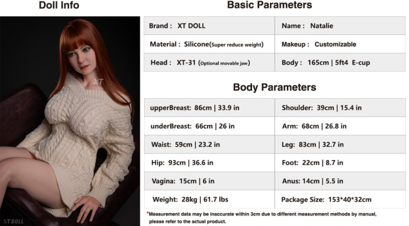 XTdoll 165cm E-Cup Natalie XT-31-B Silikonpuppe