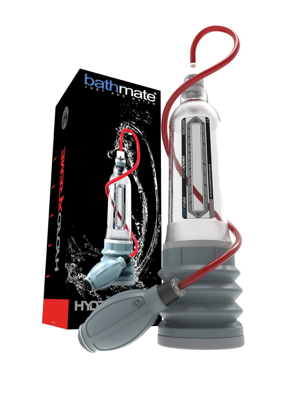 Bathmate HydroXtreme9 is a revolutionary hydropump from the new Xtreme series, featuring an advanced design with a new valve and removable handle. This hydropump is intended for men who take their training seriously. HydroXtreme comes with all the accessories you might need. This ultimate product helps increase penis length and girth, provides instantly visible results, harder and stronger erections, extends endurance in bed, all using high-quality materials and patented technology. The hydropump is completely safe to use.Bathmate HydroXtreme9 is the ideal choice for those who have outgrown smaller hydropump sizes and whose erection size ranges between 7 and 9 inches. Made from durable plastic, specifically ABS plastic, in a transparent color.