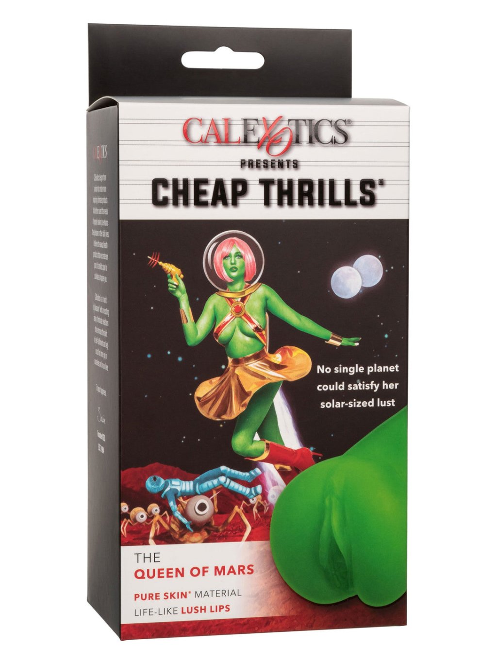 Immerse yourself in a whole new galaxy of pleasure when you try the Cheap Thrills The Queen of Mars Masturbator. Its closed design provides an excellent suction effect, while the uniquely textured chamber and ultra-soft, flexible Pure Skin material will delight you with life-like sensations. Whether you're getting carried away at home or wherever pleasure takes you, the compact 5.5 inch (14 cm) masturbator is the seductive travel companion you crave. Pure Skin quality material is odorless, phthalate free and maintenance free for truly explosive results. - Ultra realistic Pure Skin® material masturbator - Soft, tight and flexible - Textured chamber for even more intense sensations - Closed end for superior suction effect - Maintenance free - **CHEAP THRILLS is a trademark of New Frontier Media, Inc. and is registered in the United States.