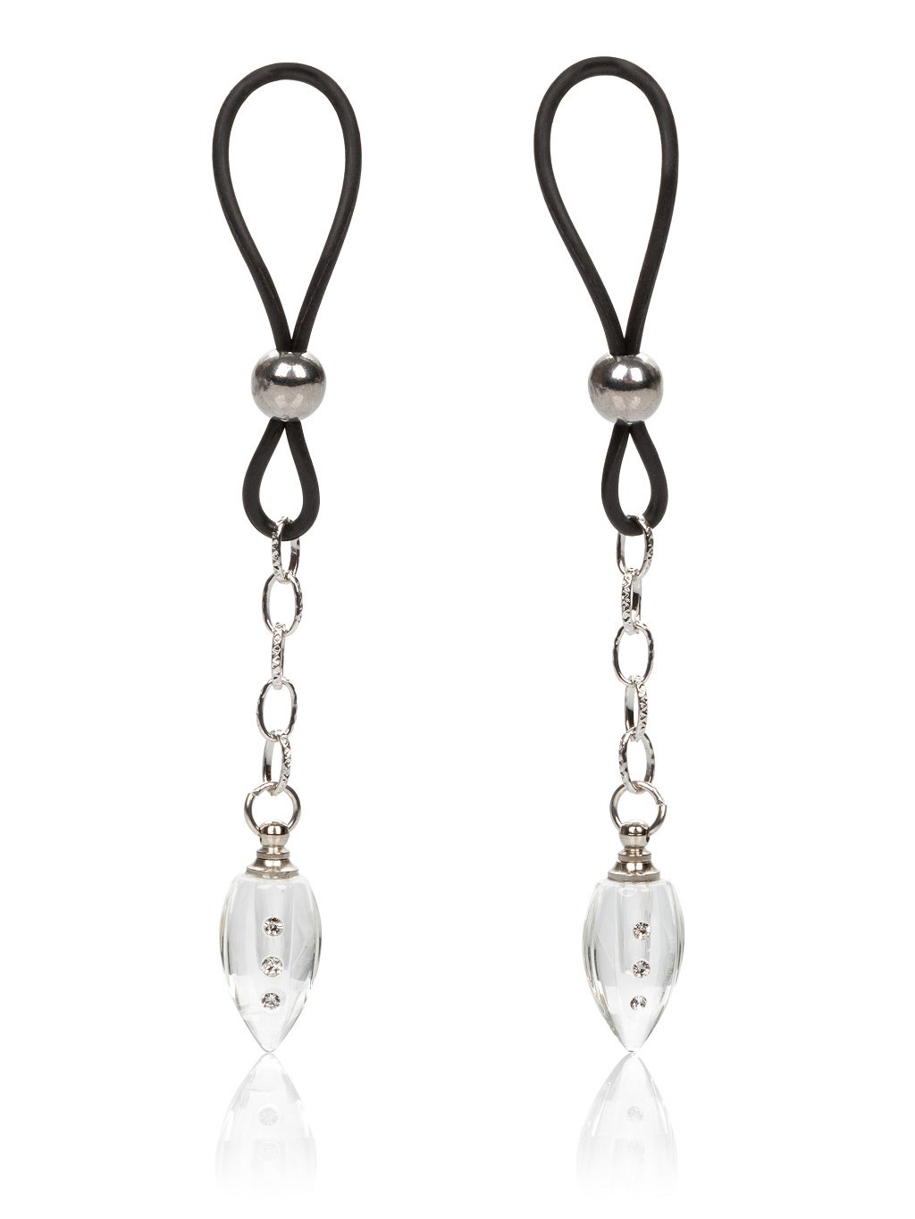 Take sensations to a higher level and enjoy tantalizing nipple play with Nipple Play® Non Piercing Nipple Jewelry Crystal Teardrops; Discover enhanced sensation with 2 fully adjustable nipple adornments, a flexible cinching mechanism, and sparkling crystals. One look at the sparkling crystal jewelry inspired by playful fantasies will have your lover on edge; Inspire feelings of sensuality, confidence, and excitement as you tighten the cinching mechanism. The silicone cinching design allows playful beginners and fetishists alike to enjoy the sparkling body jewelry; Tighten the adjustable tension of the cinching mechanism for intense teasing and enhanced pleasure. With tantalizing teasing and increased blood circulation, you can expect heightened nipple sensitivity and intensified overall arousal; These easy-to-use teasing nipple adornments are great for him and her. Two adjustable silicone loops are made from adjustable nickel-free iron chain and silicon crystal stones.Related products