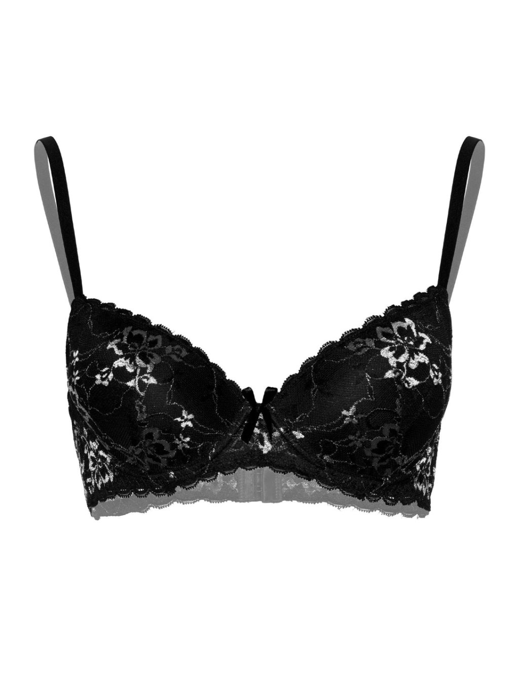 The stylish Demi bra with floral lace will provide you with sexy comfort for every day. This bra features delicate floral lace, adjustable straps and a 3x2 hook fastening on the back. Made of 90% polyamide and 10% elastane. Care: Hand wash, do not bleach, do not tumble dry, do not heat and cannot be dry cleaned. Manufacturer: Daring Intimates. Black colour.
