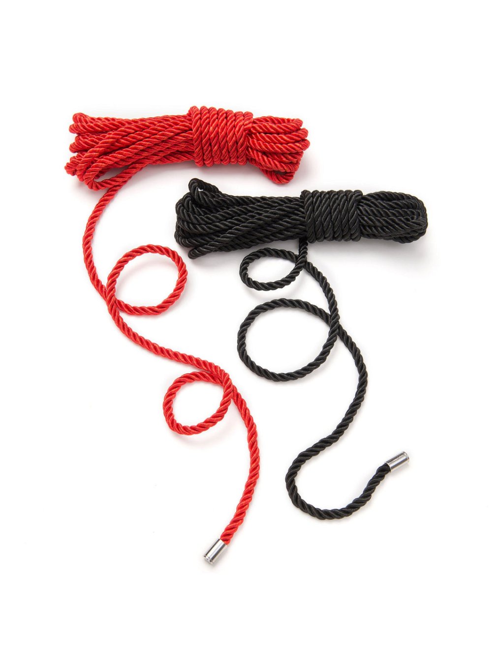 This set of two short silk ropes from the official Fifty Shades of Gray collection, approved by author E L James, is the perfect choice for experienced bondage players looking to perfect their tying skills. Each rope has a metal end for safe use, and its silk material is triple-twisted to ensure high strength and durability without flexing. This material also reduces friction against the skin and makes it easier to untie knots. Due to the absence of elasticity in the tangle of rope, you can be sure that you will never bind your submissive partner too tightly. You can use the ropes individually to bind your wrists and ankles, or combine them to create attractive colorful harnesses or hog ties. Due to their versatility and quality, they are an ideal choice for various bondage games. Technical data: - Material: Polypropylene and metal ends - Manufacturer: Fifty Shades Of Gray - Color: Multicolor The package contains two nylon ropes, which allows you to expand your bondage repertoire with many variations of use. These ropes are exceptional in their design and material, and are therefore a must-have for anyone involved in bondage at a professional level.