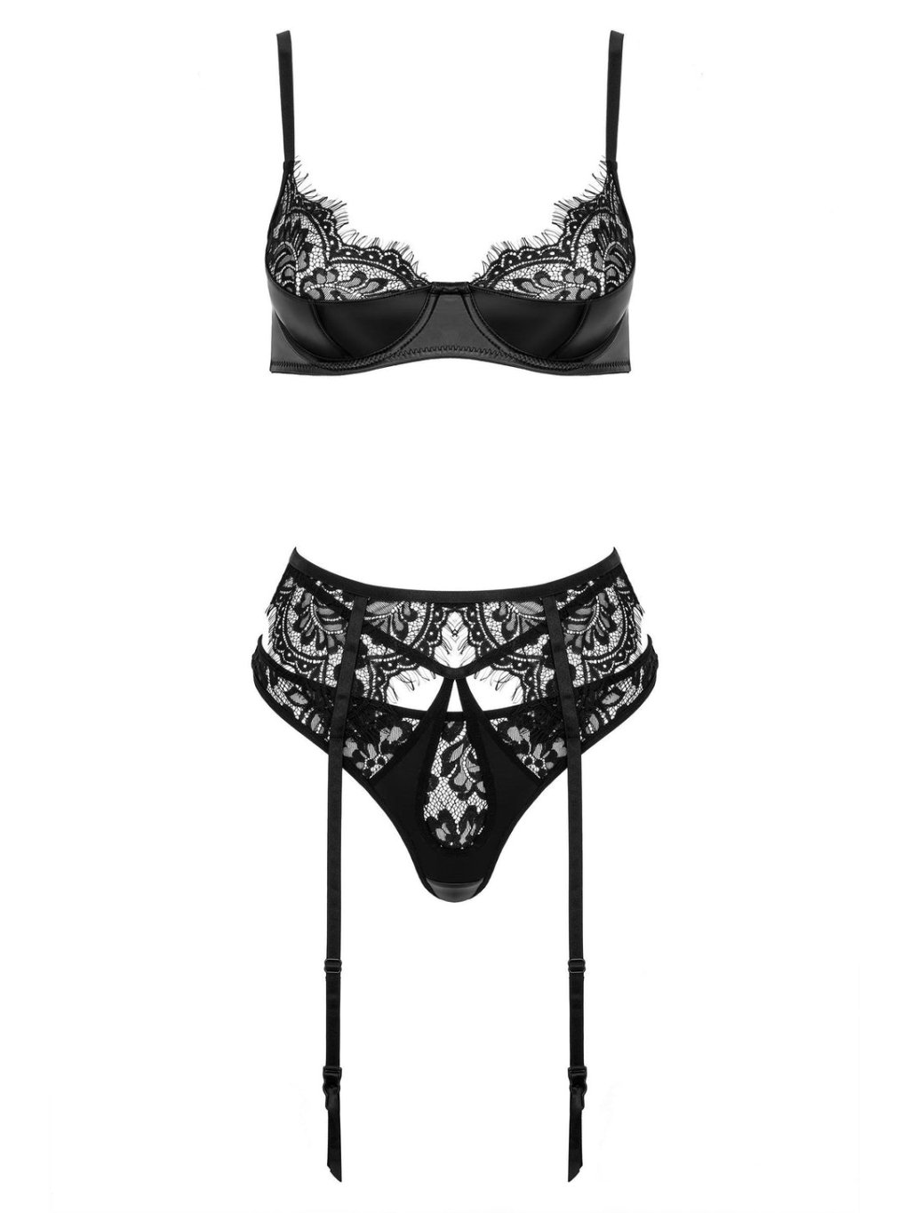 Cotteli Collection Sexy Strapsset is an elegant set consisting of an underwired bra and a garter belt. The bra and garter belt are adjustable to the required length.