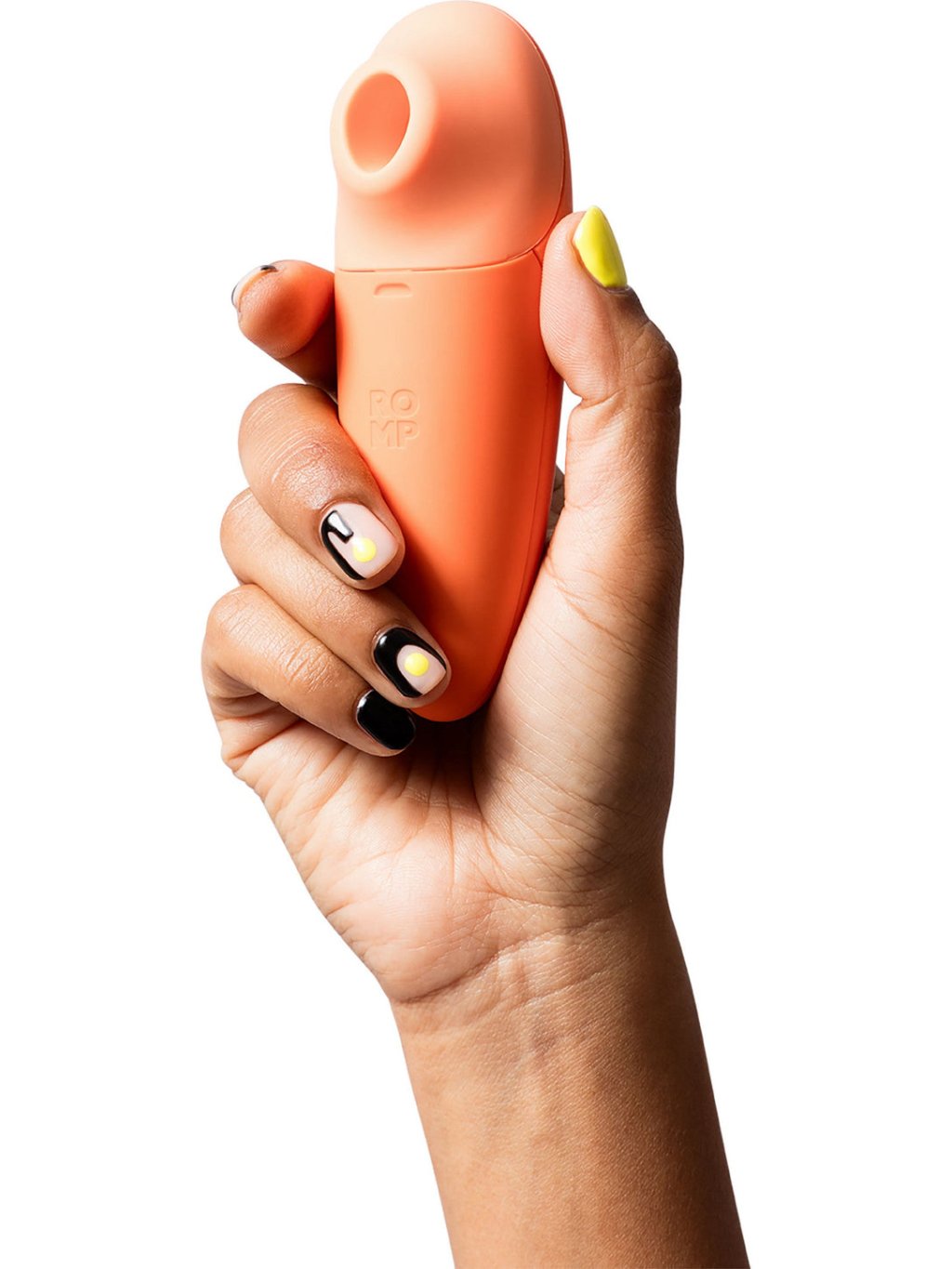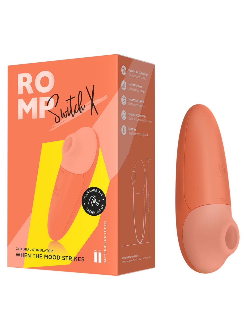 ROMP's Switch X is an innovative clitoris stimulator that fits in the palm of your hand and brings pleasure wherever you are. This compact device has recently been upgraded with a durable and stylish design with easy-to-use buttons that allow you to easily change stimulation types. Pleasure Air technology offers contactless stimulation - from gentle caresses to intense pulsations. Thanks to battery power, you can experience spontaneous pleasure anytime, anywhere without the need for a power outlet. The stimulator has six intensity levels that allow you to customize the experience exactly to your liking. Thanks to IPX4 coverage, the device is splash-proof, so you can enjoy it even in wet environments without worry. With a battery life of 300 minutes on a single charge, you can enjoy long hours of pleasure, whether you prefer short sprints or long marathons. The materials used on the Switch X include a soft-touch ABS body, a body-safe silicone head, and TPE buttons to ensure comfortable operation. With a vibrant orange color, this clitoral stimulator adds a pop of color to any personal accessory collection. Relax and let yourself be seduced by ROMP Switch X.