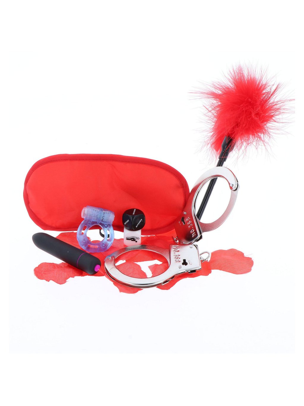 Expressing love with words is magical, but expressing it in the bedroom (or in the kitchen, bathroom, or anywhere you want to be a little naughty) is much more fun! And you know what's even better? Being sexy with playful accessories that enhance your intimate adventure! The Sensual Love Kit contains everything you need to ignite passion and explore each other's desires in a sensual, slightly scandalous, and very pleasant way. It includes handcuffs, a pleasant feather tickler, artificial rose petals, a love dice, a vibrating penis ring, an eye mask, and a vibrator. Start experimenting and express "I love you" with your naughty actions, not just words!Additional parameters