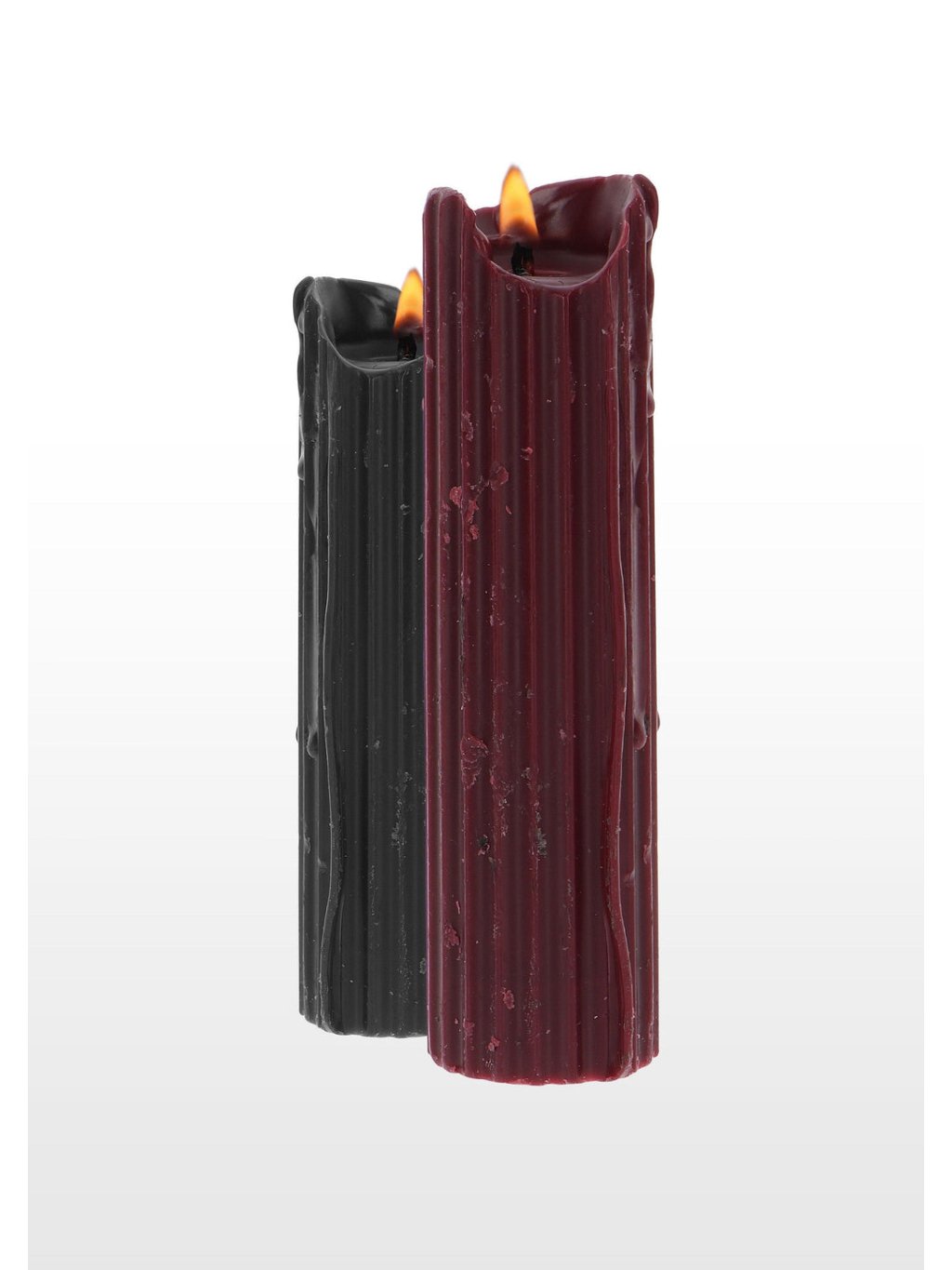 The package contains 1 x black and 1 x burgundy BDSM drip candle.