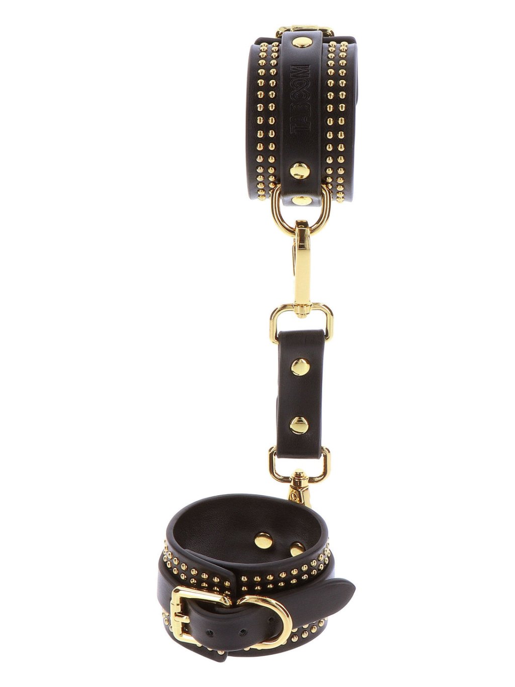 Discover the pinnacle of elegance and sensuality with these TABOOM ankle cuffs. Designed for anyone who desires to explore the world of bondage and BDSM with elegance, these cuffs are the perfect combination of allure and sophistication. The elegant black color with opulent gold details creates an atmosphere of luxury that is simply irresistible. The striking contrast of colors not only adds a touch of glamour but also emphasizes the strength and passion associated with exploring your desires. They offer a secure and adjustable fit for ankle sizes, ensuring a satisfying experience for everyone. Embrace the art of bondage in a way that embodies grace and allure with these TABOOM ankle cuffs.Additional parameters