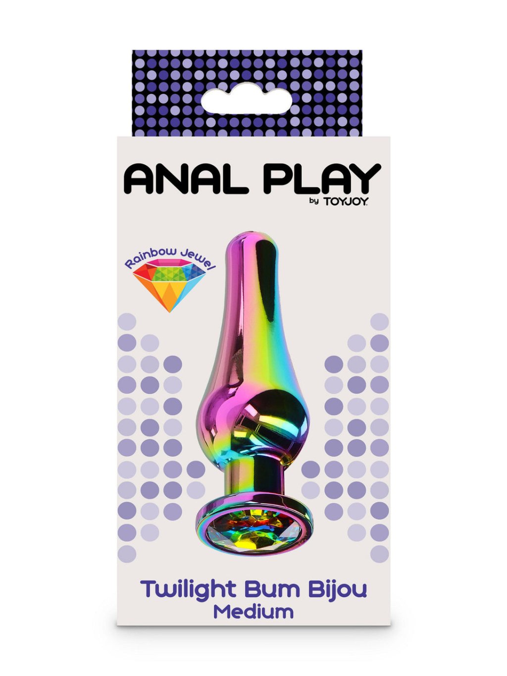 Twilight Bum Bijou Medium is a luxurious anal plug with an elegant rainbow gemstone in the base. This anal plug has a smooth surface made of high-quality aluminum and a tapered silhouette for easy and comfortable use. It features an expanded base adorned with a beautiful gemstone. Diamond Bum Bijou is not only beautiful but also completely body-safe, and is an integral part of the Anal Play collection by TOYJOY.