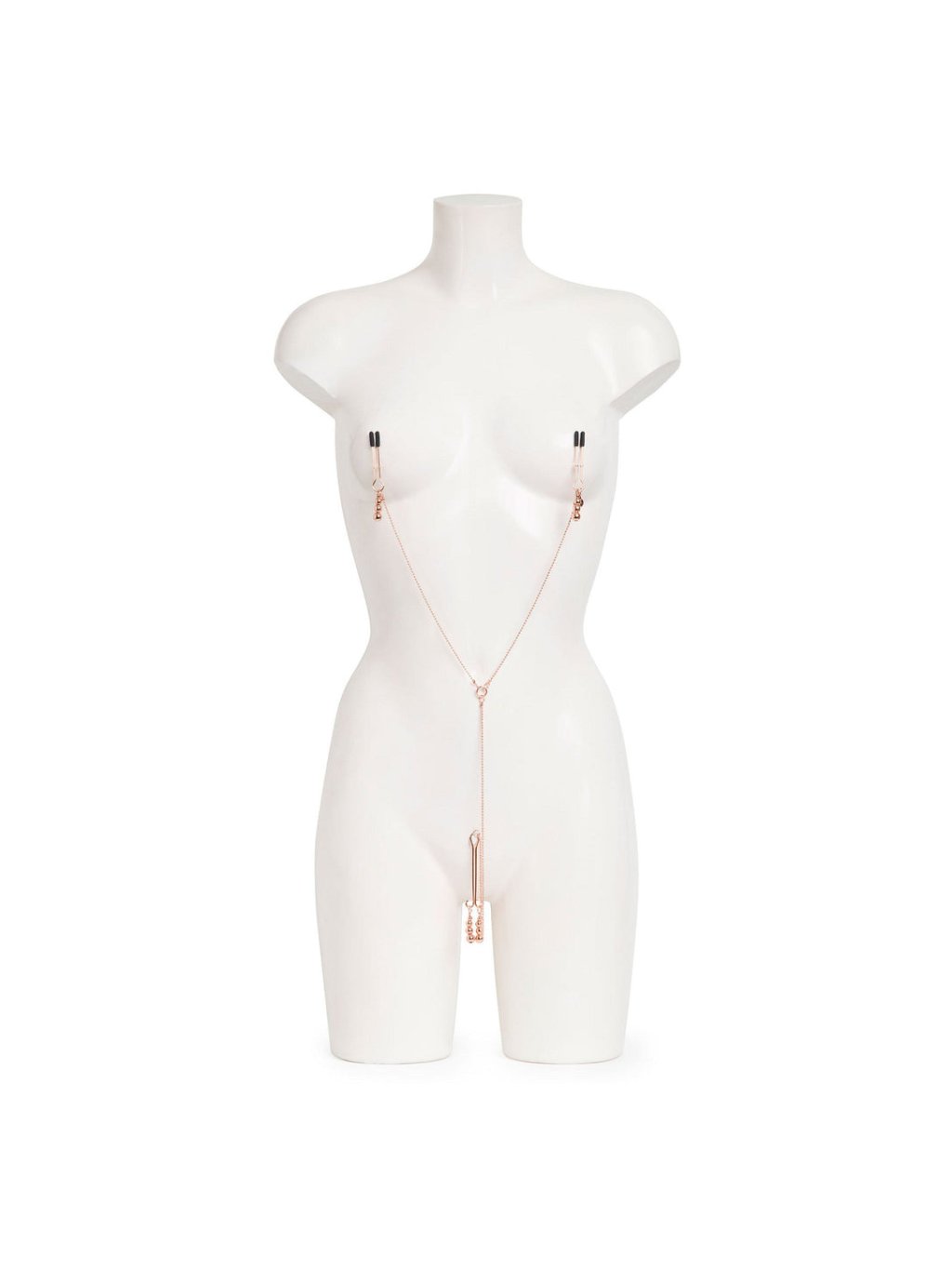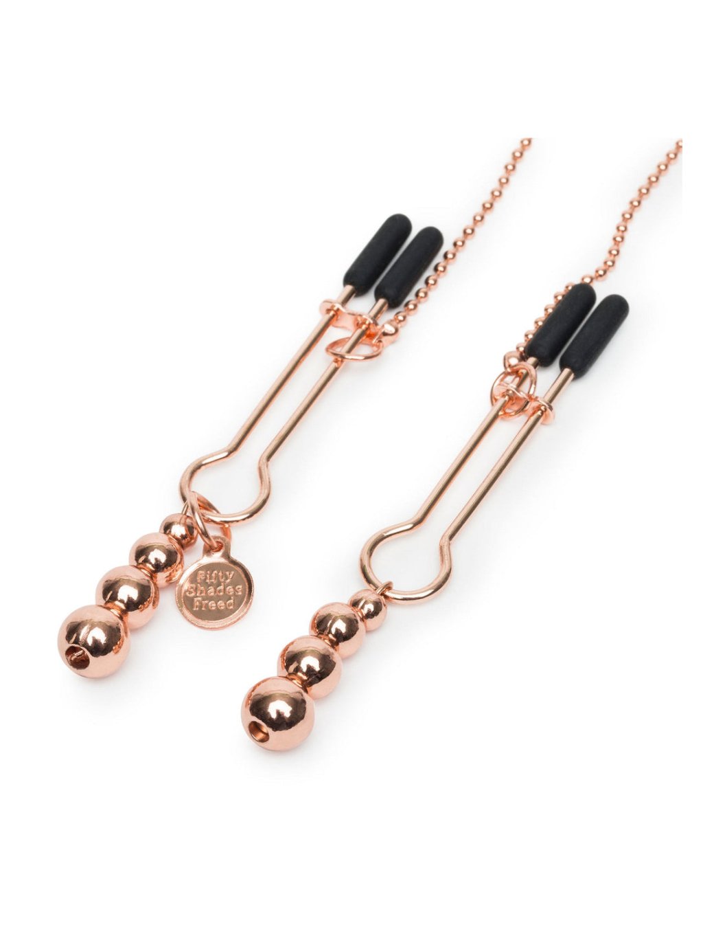 Ponořte se do světa erotické módy a smyslného potěšení s tímto nádherným řetízkem na bradavky a klitoris, který je součástí oficiální kolekce Fifty Shades Freed, schválené spisovatelkou E L James. Tento řetízek je dokonalým spojením rozkoše a jemné bolesti, nabízející zcela nový zážitek ze smyslové hry. Užijte si zvýšené citlivosti a zesíleného vzrušení díky nastavitelným svorkám na bradavky s ochrannými silikonovými špičkami a klitorální svorce, kterou lze přizpůsobit podle potřeby. Tyto prvky poskytují exkluzivní štípnutí a tlak na nejcitlivější místa vašeho těla, čímž je připraví na další stimulaci - ať už formou doteků, pohlazení, líbání, nebo lízání.