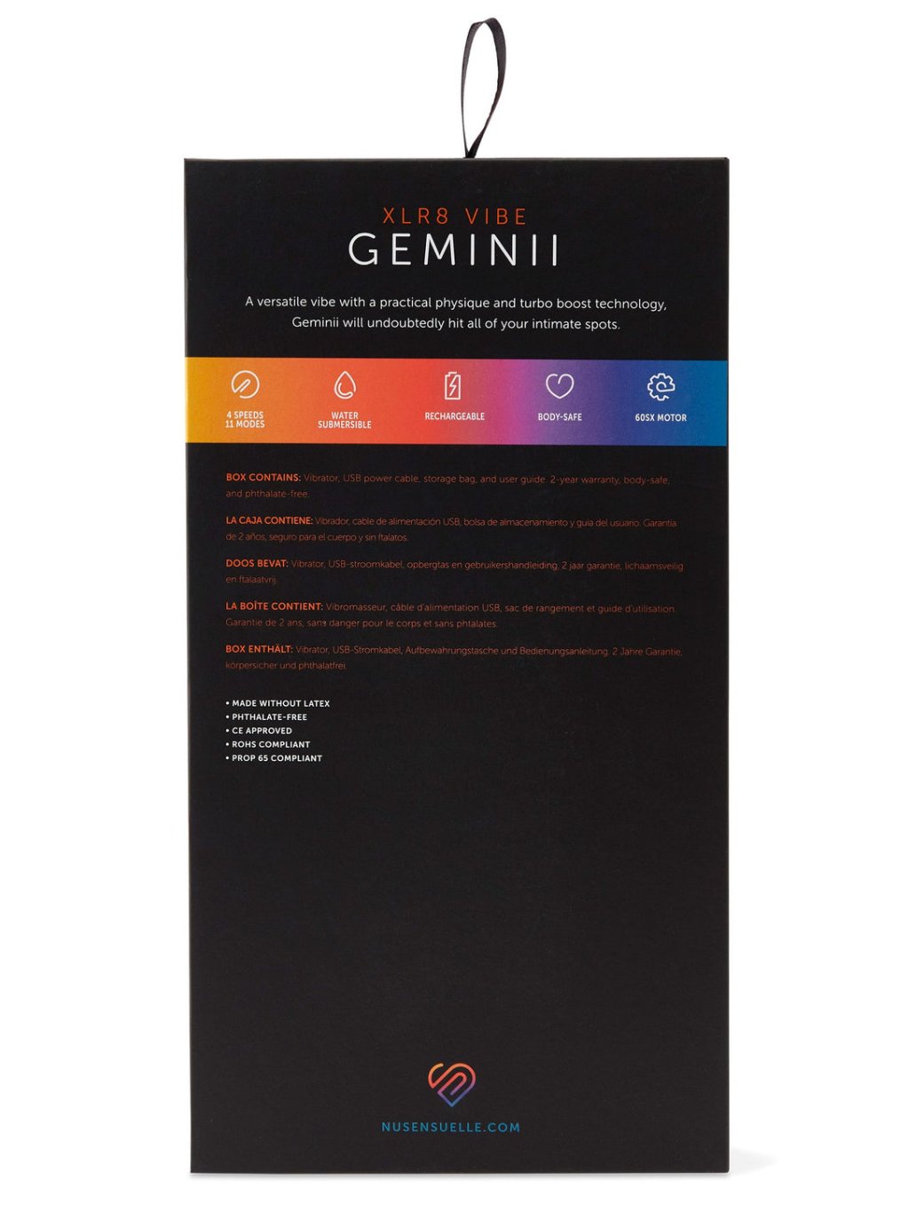 Nu Sensuelle je držitelem ocenění za nejlepší značku produktů pro potěšení, která umožňuje zvědavým jedincům prožít vyšší úroveň spojení, intenzity a růstu. Nabízí široký výběr všestranných produktů jak pro samotné použití, tak i pro použití ve dvojici. Ať už jste začátečník nebo pokročilý, Nu Sensuelle má pro vás produkt, který Vám umožní objevovat své smysly a rozvíjet svůj erotický potenciál.