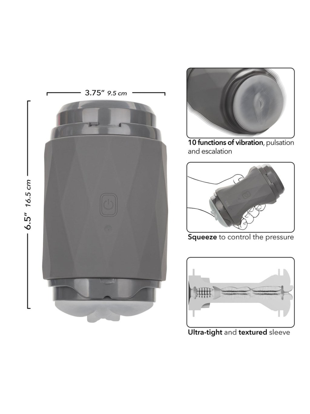 Ciesz się nieskończonymi możliwościami przyjemności z Milk Master Vibro Squeeze Pussy od firmy CalExotics, który jest Twoim nowym pomocnikiem do intensywnych solo doświadczeń. Ten samodzielny, ładowalny, dwukierunkowy masturbator łączy potężną aktywność wibracyjną z unikalną funkcją „squeeze-to-control”, pozwalającą na precyzyjne ustawienie intensywności i nacisku, którego potrzebujesz. Niezależnie od tego, czy pragniesz delikatnego głaskania, czy mocnego uścisku, to urządzenie dostosuje się do Twoich wymagań, oferując spersonalizowaną przyjemność bezpośrednio pod Twoimi palcami.Zanurz się w różnorodnym świecie doznań z 10 różnymi funkcjami wibracji, pulsacji i eskalacji. Ultra ciasny i teksturowany rękaw jest otwarty na obu końcach dla łatwego czyszczenia, a jego dwukierunkowy design jest idealny do różnych typów stymulacji. Uchwyt EZ grip zapewnia pewne i mocne trzymanie, podczas gdy zdejmowane pokrywki umożliwiają bezpieczne i czyste przechowywanie.