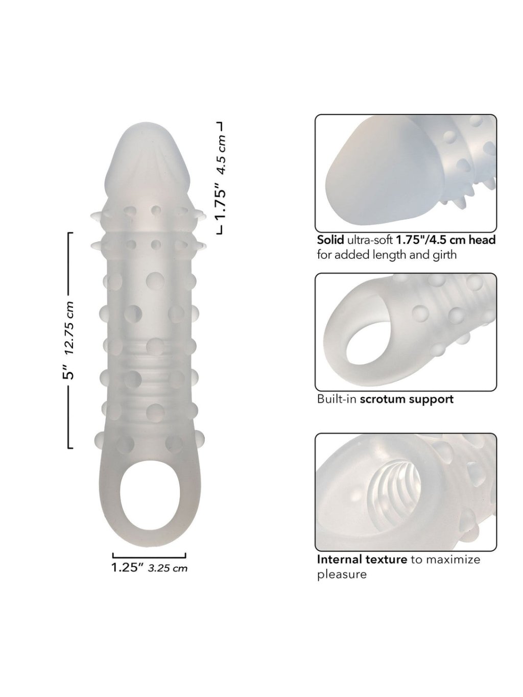 Elastyczna realistyczna nakładka na penisa jest miękka, ale z solidnym wewnętrznym zakończeniem. Nakładka zwiększa długość penisa o 7,5 cm i obwód o 0,5 cm. Duży obwód żołędzi i...