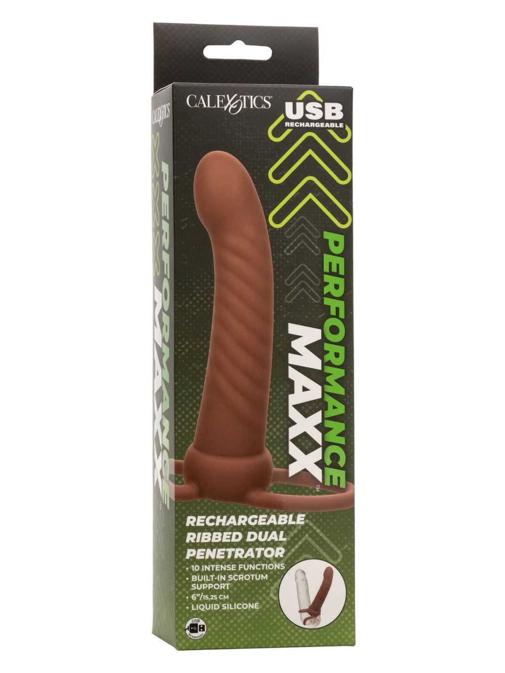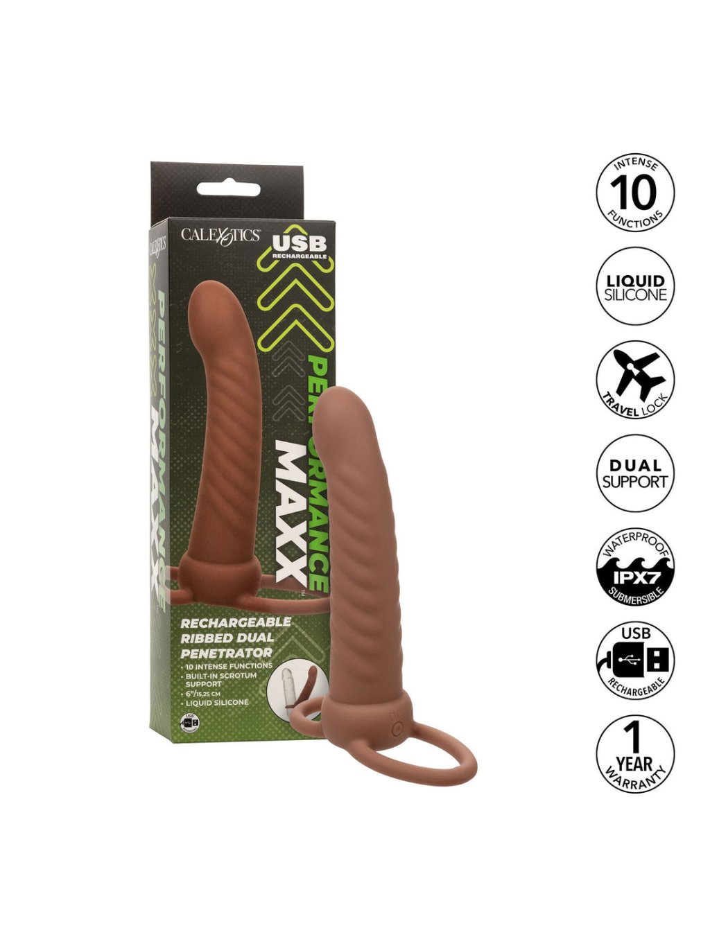 CalExotics Performance Maxx Rechargeable Ribbed Dual Penetrator - Brązowy odcień skóry