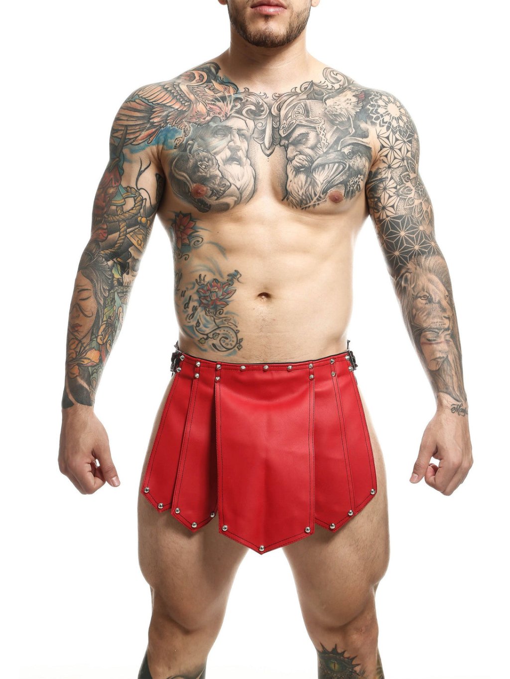Zachwyć swojego partnera w najlepszy sposób skórzaną rzymską spódnicą wojownika. Otwarta po bokach z trójkątnym wzorem z przodu i z tyłu. Ta wygodna i funkcjonalna pomoc do sypialni jest w pełni regulowana i wykonana z trwałej sztucznej skóry. Nosi się nisko dla kostiumu, któremu nie można się oprzeć! Materiał: Sztuczna skóra | Metal, Grupa materiałowa: Tkanina, Producent: MOB Eroticwear, Kolor: Czerwony.Parametry dodatkowe