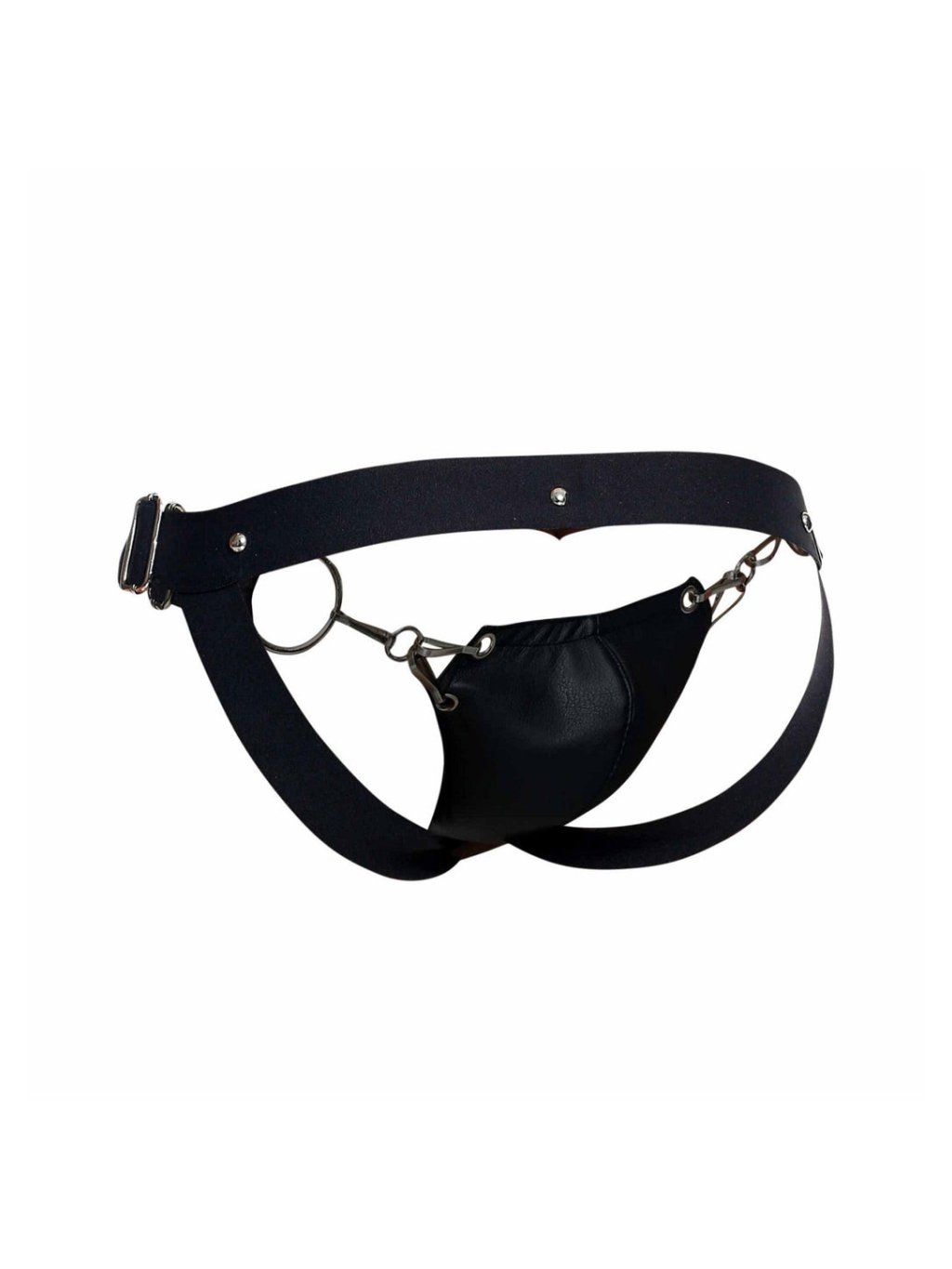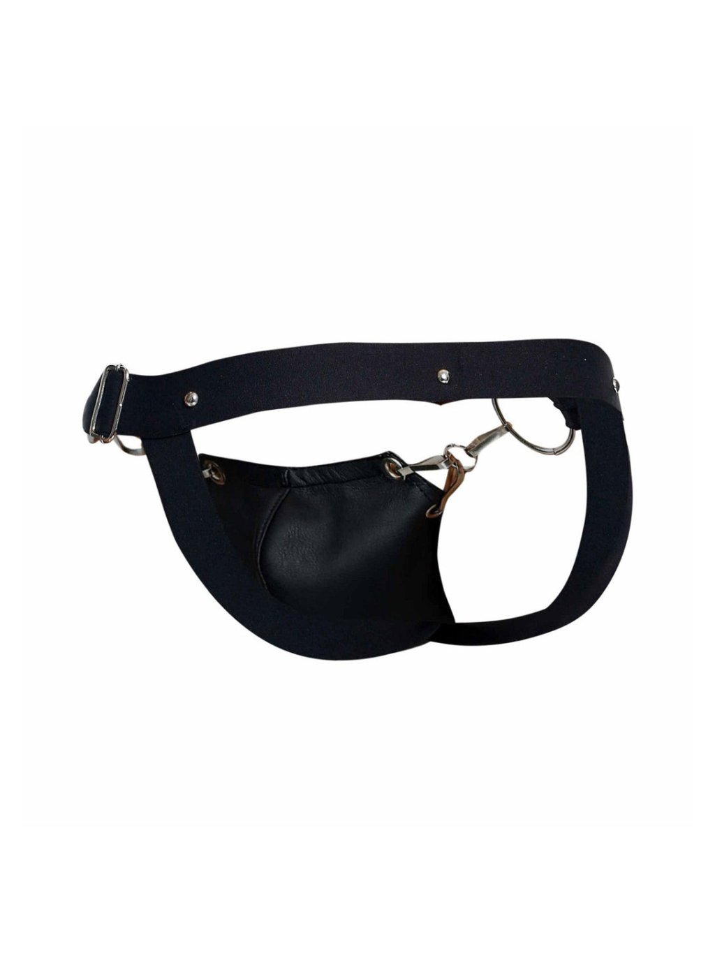 Czarna jockstrap z imitacji skóry DNGEON Peakaboo