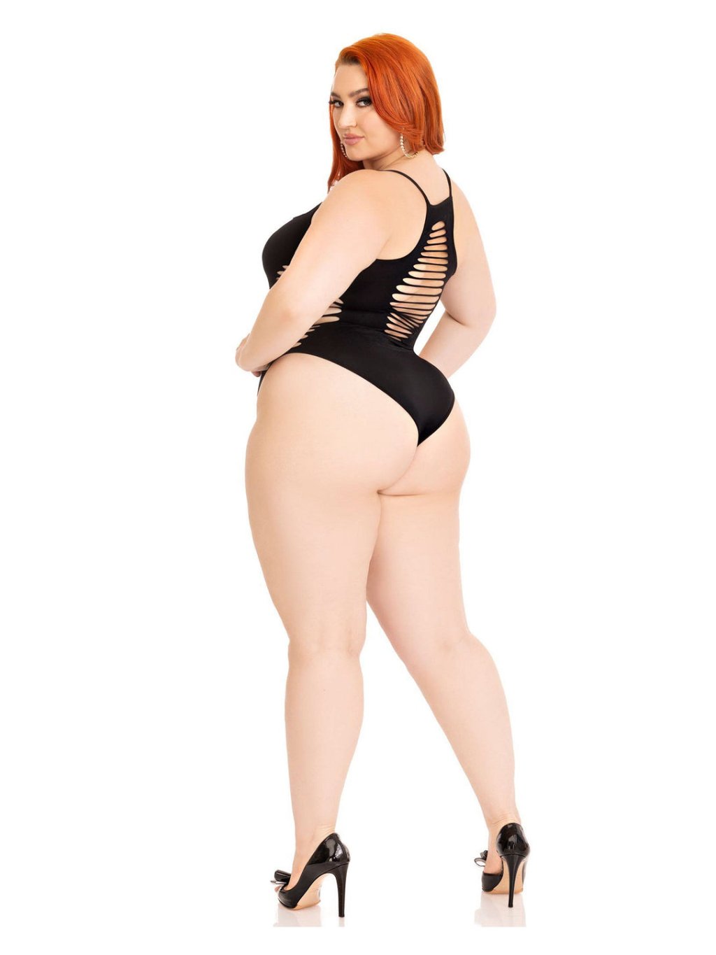 Very Sexy Lingerie Leg Avenue Shredded thong bodysuit + - Black - 1X/2X