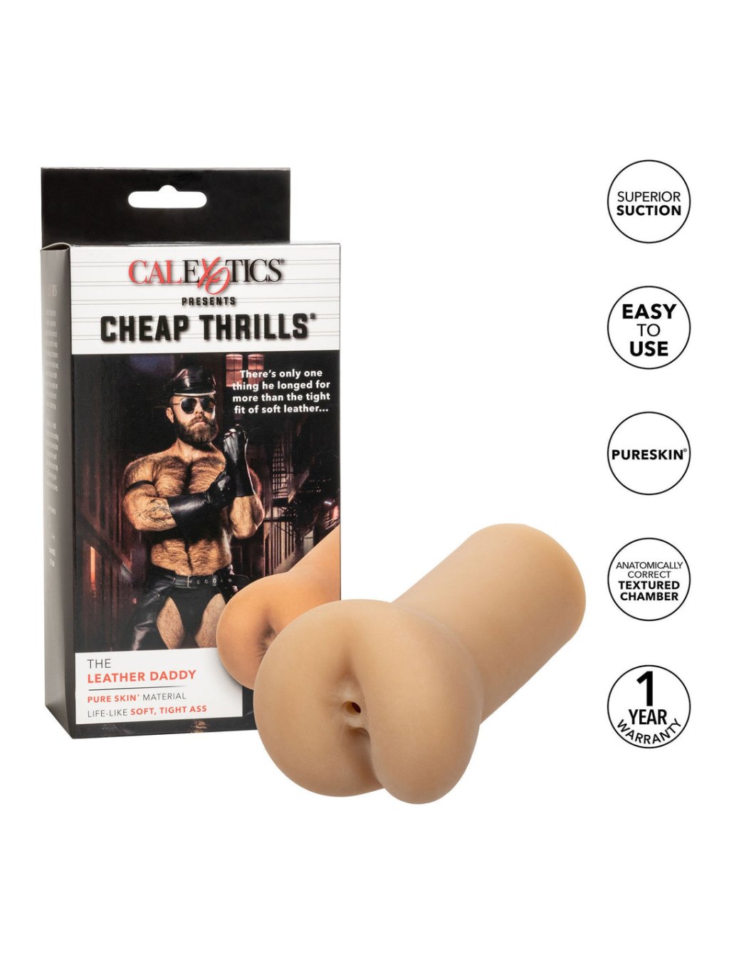 Užite si vzrušujúce sny s masturbačným stimulátorom Cheap Thrills The Leather Daddy, ktorý vám poskytne realistický zážitok vďaka textúrovanej komore a mäkkému materiálu Pure Skin. Jeho uzavretý dizajn zaručuje vynikajúcu saciu schopnosť a kombinácia rôznych textúr vás doslova dostane. Štýlovo kompaktné rozmery 5,5 palca (14 cm) ho robia skvelým spoločníkom aj na cesty. Materiál Pure Skin je bez zápachu, neobsahuje ftaláty a je ľahko udržiavateľný, aby vaše najcitlivejšie miesta zostali šťastné a zdravé. Tento masturbačný stimulátor je vyrobený z termoplastického elastoméru (TPR / TPE) od výrobcu CalExotics a má karamelový odtieň pokožky. Je vodotesný a nevyžaduje dobíjanie, čo z neho robí dokonalý erotický doplnok pre vaše intímne chvíle.