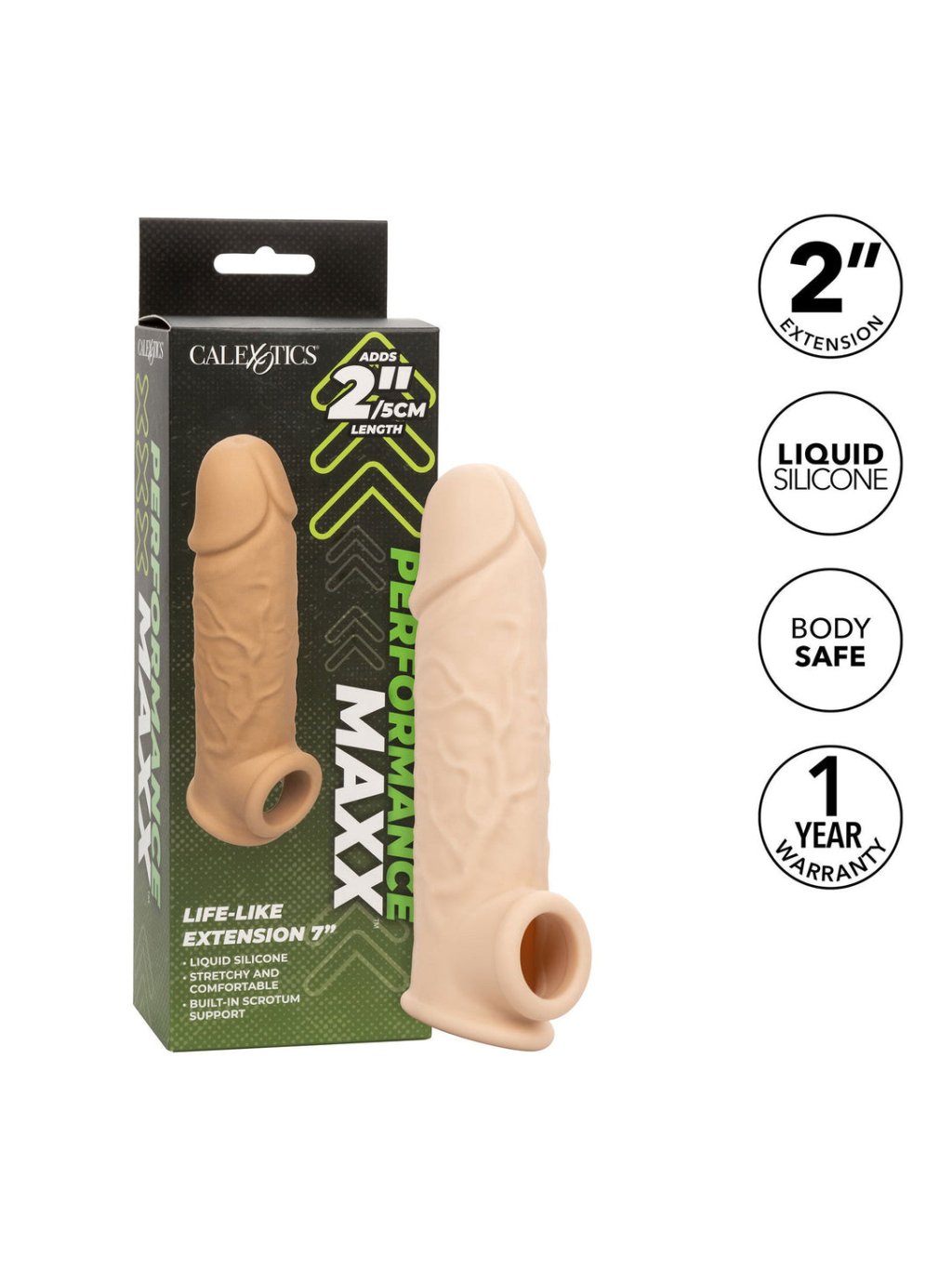 Zvýšte svoje sexuálne potešenie s realistickým návlekom na penis s predĺžením na dĺžku o 7 palcov (približne 18 cm). Tento životne realistický obal s dutým dizajnom vám pridá 5 cm na vašu dĺžku a zaručí tak ešte intenzívnejší erotický zážitok. Vďaka vstavanému otvoru na semenníky a robustnému obalu získate nielen lepšiu podporu erekcie, ale aj dlhšiu výdrž, čo predĺži a prehĺbi potešenie pre oboch partnerov. Kvalitný silikón je bez zápachu, neobsahuje ftaláty a nepotrebuje žiadnu špeciálnu údržbu.