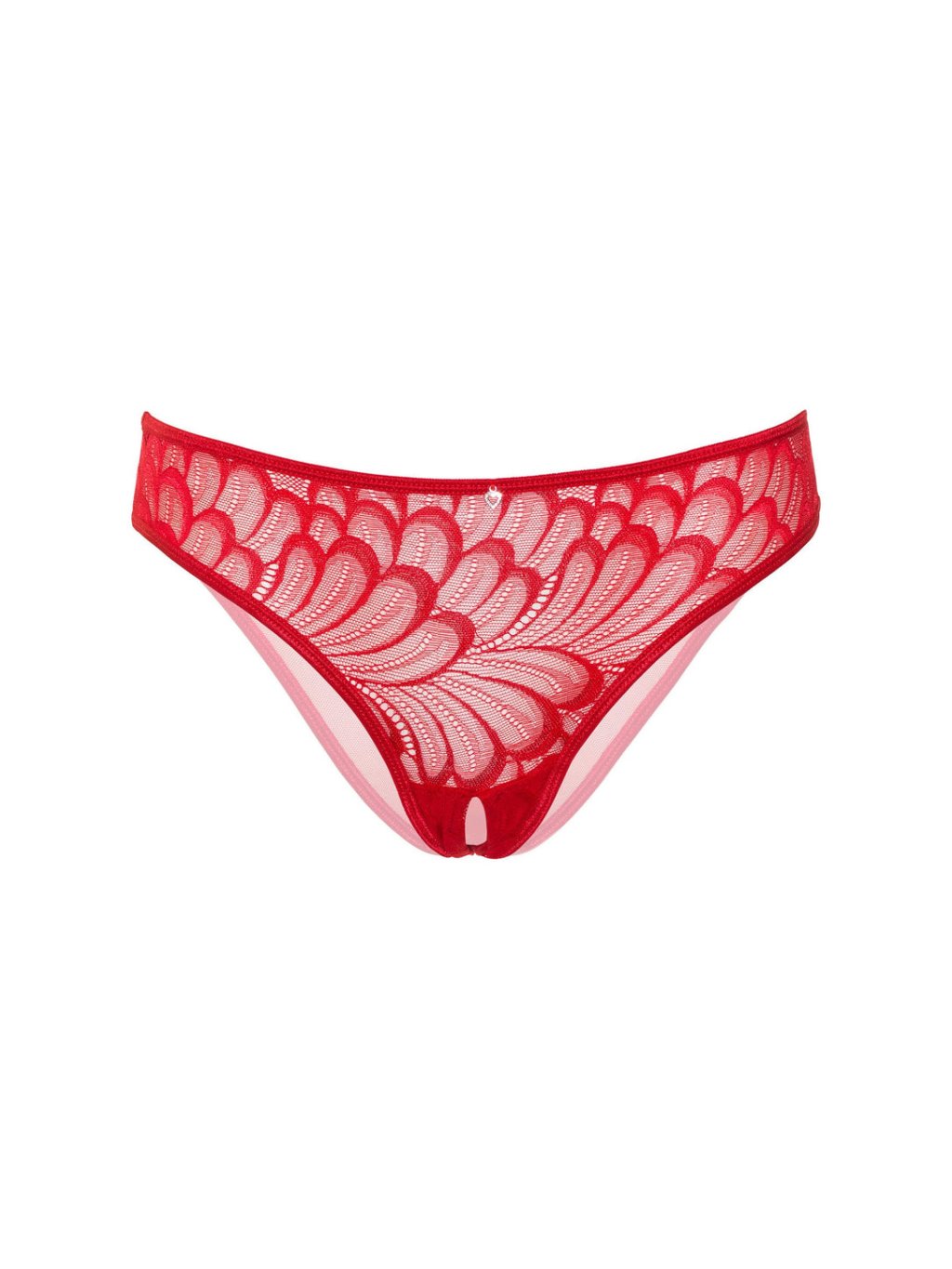 Značkové spodné prádlo pre ženy Penthouse. Penthouse Hot getaway - elegantné a sexy zároveň - červené krajkové tangá s otvoreným rozkrokom. Veľkosť S/M, alebo M/L.