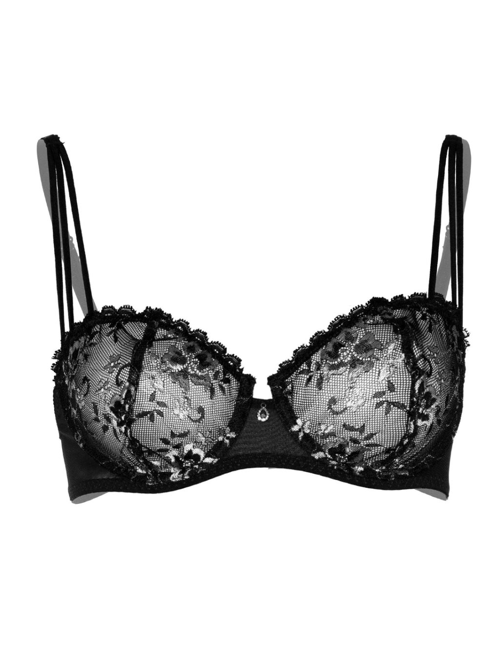 Veľmi sexy nevystužená čipkovaná podprsenka Mix & Match. Odvážna nevystužená podprsenka s tromi ozdobnými prednými popruhmi, kvetinovou čipkou, diamantovým detailom,...