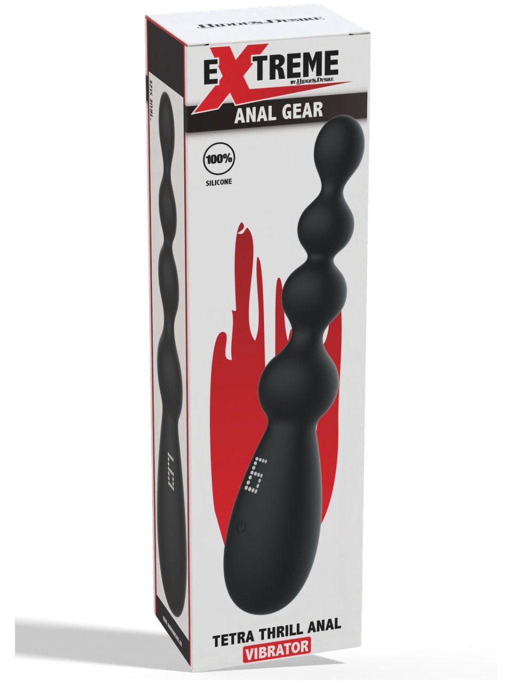 Análny vibrátor Tetra Thrill od značky Hidden Desire je navrhnutý pre tých, ktorí si chcú užiť extrémne potešenie. Tento špeciálne tvarovaný vibrátor zabezpečuje hladké zavádzanie a jeho štyri sféry poskytujú hlbokú stimuláciu. Po aktivácii silného motora sa môžete nechať unášať intenzívnymi, dunivými vibráciami, ktoré vás dovedú k explozívnemu orgazmu. Pomalé vyťahovanie vibrátora zosilňuje zážitok a prináša nevídané vrcholy pocitov. Vyrobený z 100% čistého silikónu, Tetra Thrill je nielen odolný, ale aj pohodlný na použitie. Ponúka deväť vibračných režimov, ktoré zaručujú vzrušujúce zážitky. S vodoodolnosťou IPX6 a dobíjacou lítium-iónovou batériou je tento vibrátor ľahko udržiavateľný a pripravený kedykoľvek rozšíriť vaše hranice rozkoše. Objavte nové výšky potešenia s análnym vibrátorom Tetra Thrill.