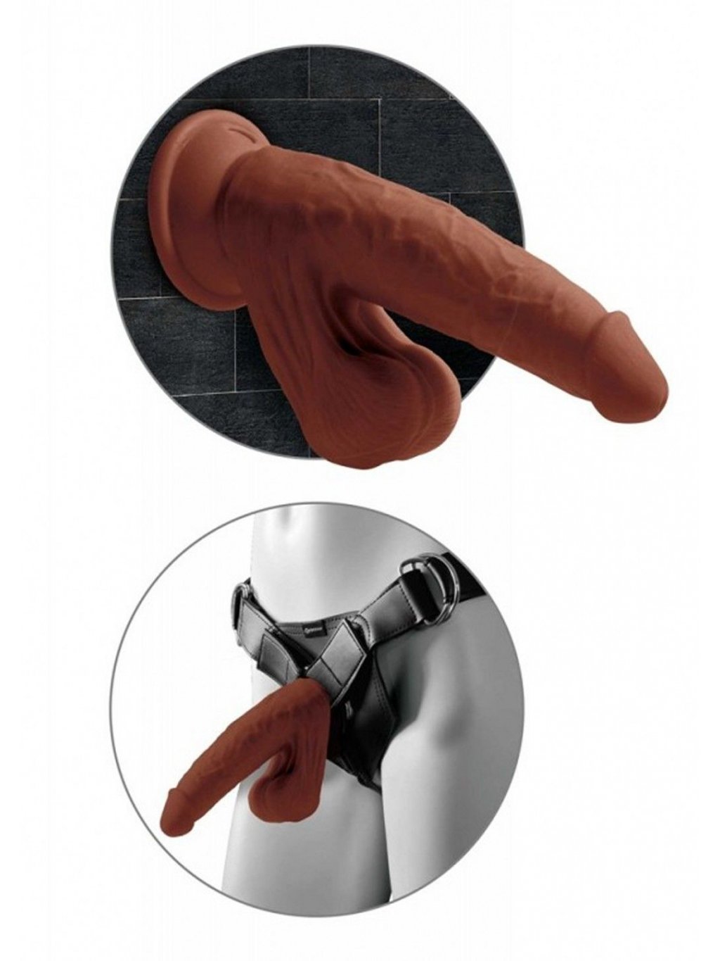 Veľkolepé dildo Triple Density Cock with Swinging Balls od King Cock Plus s hyperrealistickým vzhľadom penisu vyrobené z materiálu Triple Density (3D) Fanta Flesh, ktorý pôsobí ako skutočná koža. Vrcholom sú živé semenníky s guľôčkami vo vnútri, ktoré vibrujú pri každom príraze a vzrušivo udierajú do oblasti genitálií. Samotné dildo je pevné, ale napriek tomu realisticky ohybné, hodí sa do každej polohy. Pod priľnavými semenníkmi má dildo silnú prísavnú základňu, ktorá pevne a bezpečne priľne k akémukoľvek hladkému povrchu, čo umožňuje použitie bez použitia rúk. Okrem toho je dildo kompatibilné s popruhmi a postrojmi.