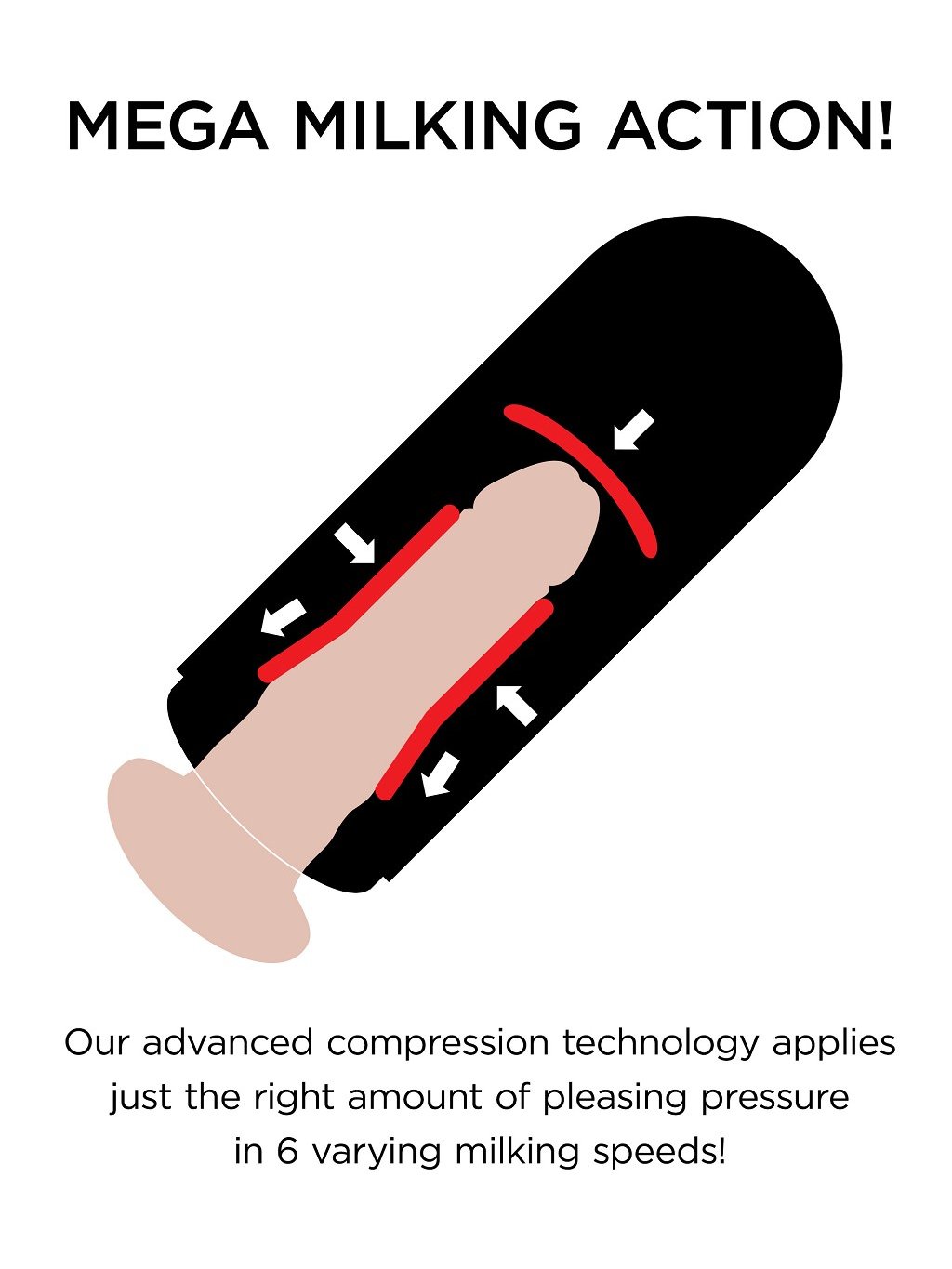 Nový PDX ELITE VIBRATING MEGA MILKER s inovatívnou technológiou stláčania je navrhnutý tak, aby automaticky obklopil váš penis stimulujúcim tlakom, čo umožňuje neuveriteľné striedanie tlaku a uvoľnenia. Priehľadné okno vám umožní sledovať dianie, keď každý centimeter vášho penisu je opakovane pripravovaný na milovanie 6 posilňujúcimi rýchlosťami. Super-hladký, realistický vnútorný rukáv Fanta Flesh vybavený masážnymi rebrami, hrbolčekmi a príjemnými textúrami splní vaše fantázie s každým záťahom. Pre plne automatizovanú vibráciu stačí stlačiť tlačidlo na výkonný dobíjací motor a užívať si 7 vzorov dráždivých vibrácií, ktoré putujú až po celej dĺžke vášho penisu. Objavte svoje možnosti! Pevný vonkajší obal s nastaviteľnou prísavkou možno nastaviť do preferovanej bezdotykovej pozície alebo odňať vnútorný rukáv Fanta Flesh pre ručné potešenie. Vlastnosti: Realistický Fanta Flesh - Naša super-mäkká Fanta Flesh napodobňuje pocit a teplo skutočnej kože. Vibrácie - Ovládajte 7 silných vibračných vzorov, ktoré obklopia váš penis maximálnym ohromujúcim zážitkom! Stláčanie - Pokročilá technológia stláčania aplikuje práve správne množstvo príjemného tlaku v 6 rôznych rýchlostiach milovania. Priehľadné okno - Priehľadné odolné okno vám umožní sledovať sami seba, ako si užívate najlepší masturbačný zážitok vášho života! LED svetelná show - Užite si farebný záblesk LED svetla, ktoré osvetlí váš masturbačný zážitok. Odstrániteľná a nastaviteľná prísavka s poistným mechanizmom - Intenzívne silná prísavka umožňuje pripevnenie na takmer každý plochý povrch s inovatívnym zamykacím mechanizmom pre extra silné spojenie. Ovládanie 3 tlačidlami - Výkonný dobíjací motor poskytuje 7 vzorov stimulujúcich vibrácií, 6 uspokojivých rýchlostí milovania a povzbudzujúcu LED svetelnú show.