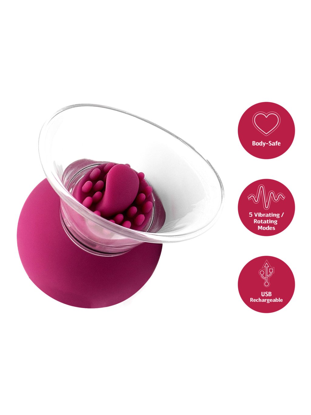 Podtlak vytvoríš stlačením balónikovej pumpičky, vďaka čomu sa zvyšuje citlivosť a prekrvenie. Následne si môžeš vychutnať 5 vibračných a 5 rotačných režimov. Telu bezpečné materiály a USB-C nabíjanie zabezpečujú pohodlné používanie.