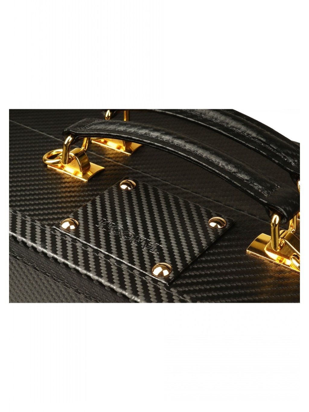 Kufřík je vyroben z mimořádně měkké veganské kůže (PU) a zdoben výraznými zlatými hroty a kovovými detaily bez obsahu niklu. Na první pohled působí jako luxusní módní doplněk – diskrétně však skrývá tajemství plná vzrušujících možností.